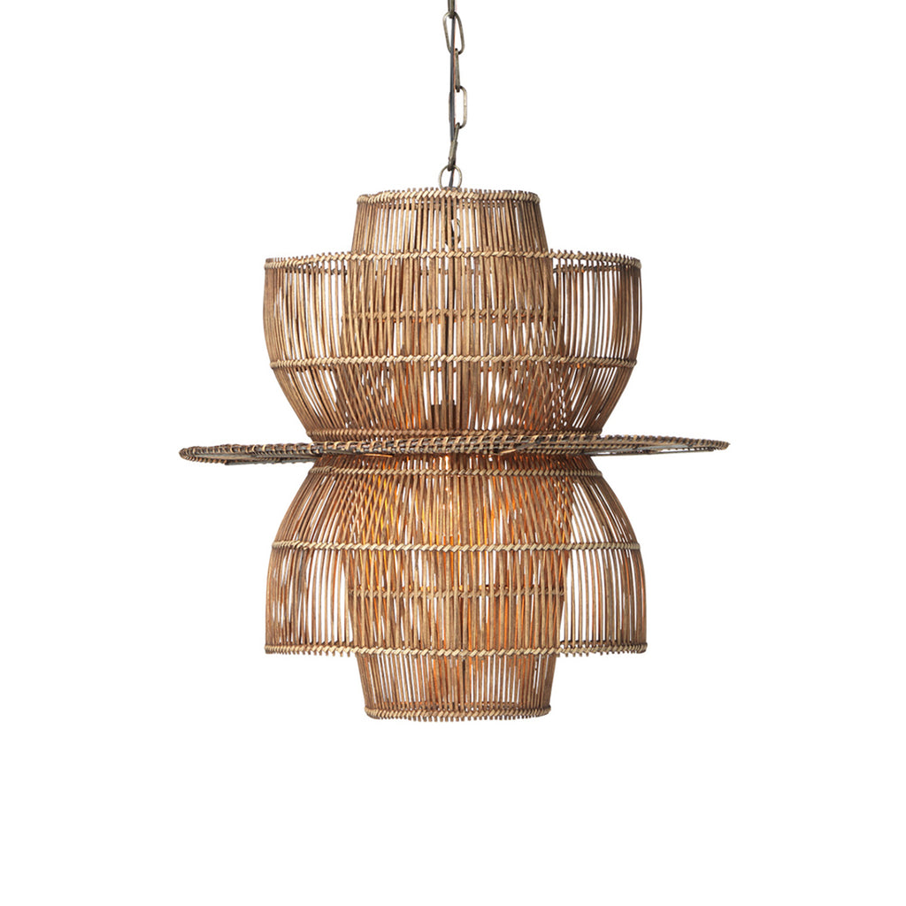 Bringing to mind the breathtaking beauty of tropical blooms, this serenity inducing pendant from Jaime Young is crafted from naturally finished rattan and features antique brass hardware. The pendant hangs gracefully from an eight foot chain. This is an inspirational décor choice in every sense of the word. Professional installation is recommended.