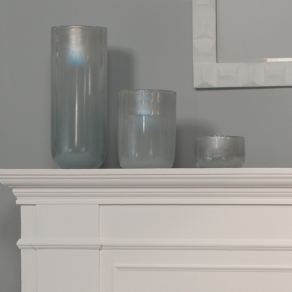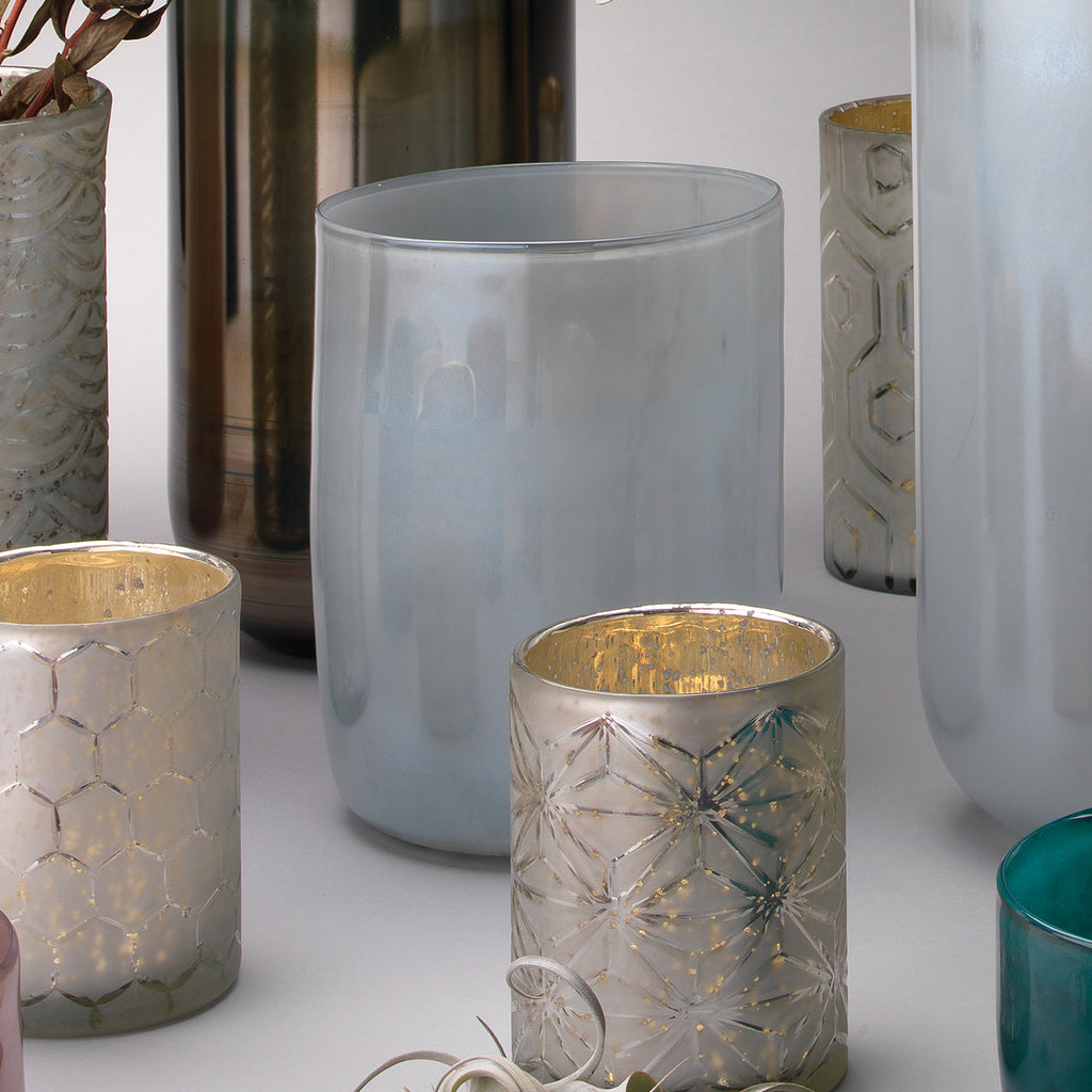 The stunning Jamie Young Vapor vessel was inspired by the combination fog, steam and smoke in the afternoon sun, creating a beautiful finish on these incredible hurricanes.