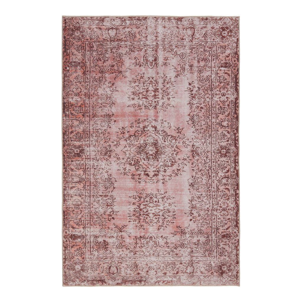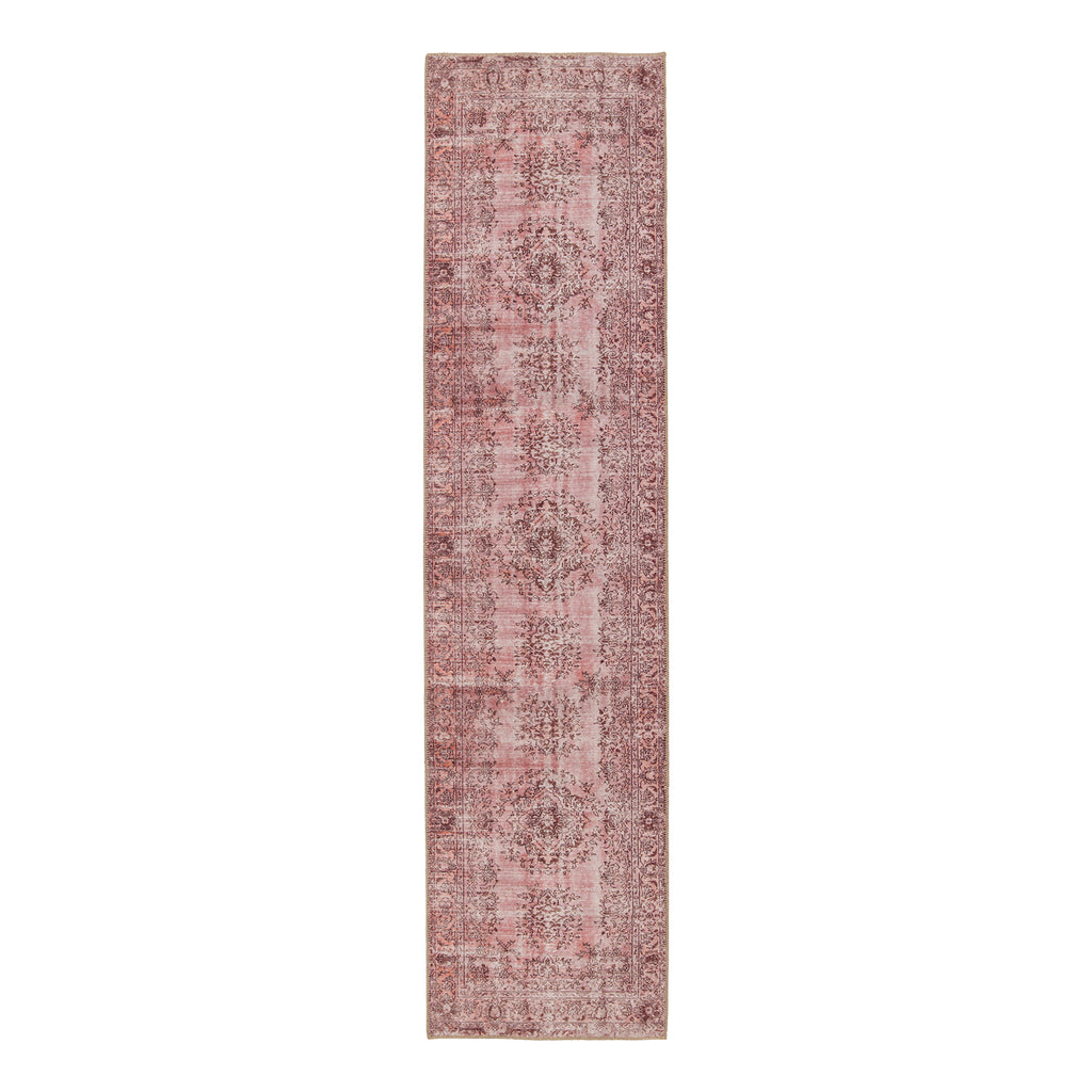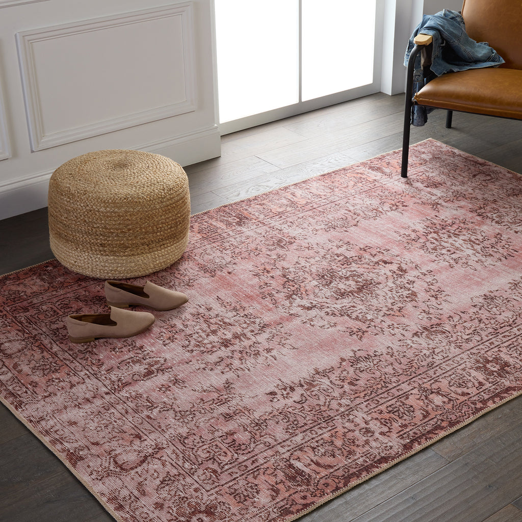 Inspired by well-traveled vintage designs, Kate Lester has joined with Jaipur Living to launch the Harman collection. This impressive assortment of antique textile designs lends heirloom-quality looks and livable style to any space. The Berxley area rug showcases a romantic floral medallion emphasized by hues of rose and maroon. This digitally printed rug boasts a perfectly distressed effect for effortless charm that is matched with durability to stand up to heavily trafficked spaces such as entryways, halls, kitchens, and living rooms.