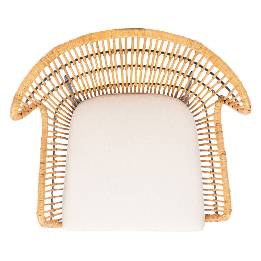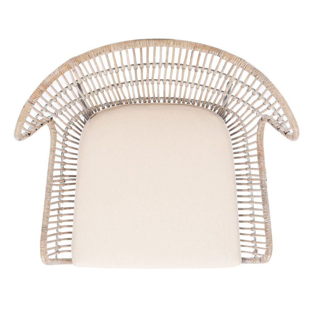 Ideal for coastal bohemian décor, this rattan accent chair enriches any room with relaxed tropical vibes. The fanback inspired silhouette is beautifully enhanced by its grey wash kubu rattan, while its soft white cushion ensures endless comfort in your indoor staycation oasis.