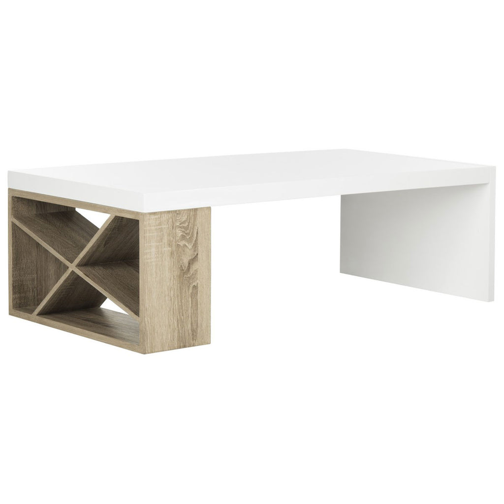 The penthouse suite in a designer boutique hotel in the Netherlands inspired the sophisticated style of this contemporary coffee table. Its radiant geometric figure features a bright white top, and light grey storage shelving ensures a tranquil workspace.