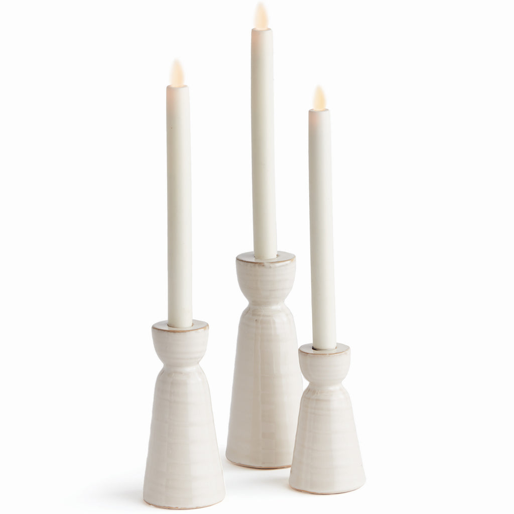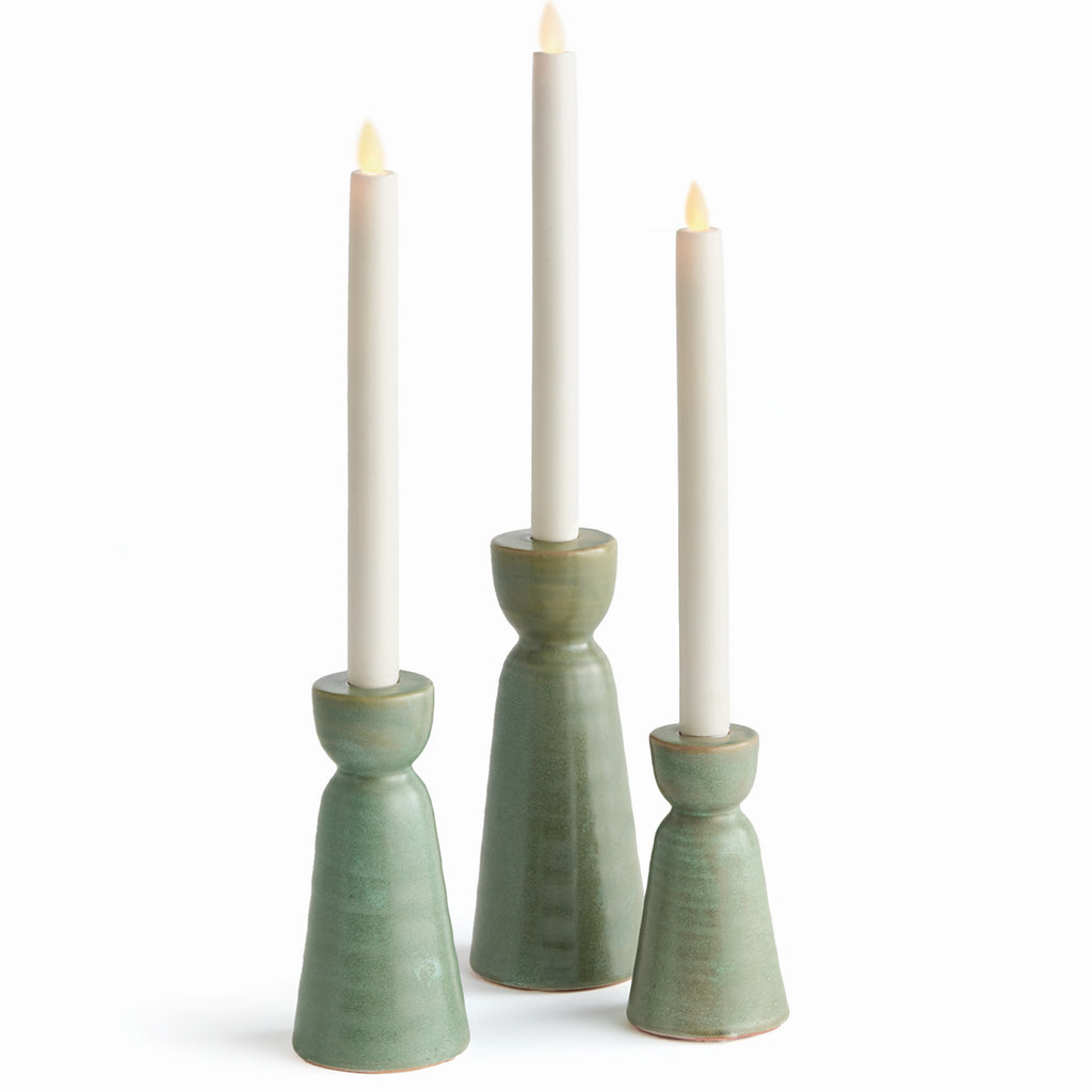 Made of a high-fired, durable stoneware, and finished with a dynamic reactive glaze, these candle stands are a beautiful trio. Pair with a few tapers of your choosing and add warmth and light to any space.
