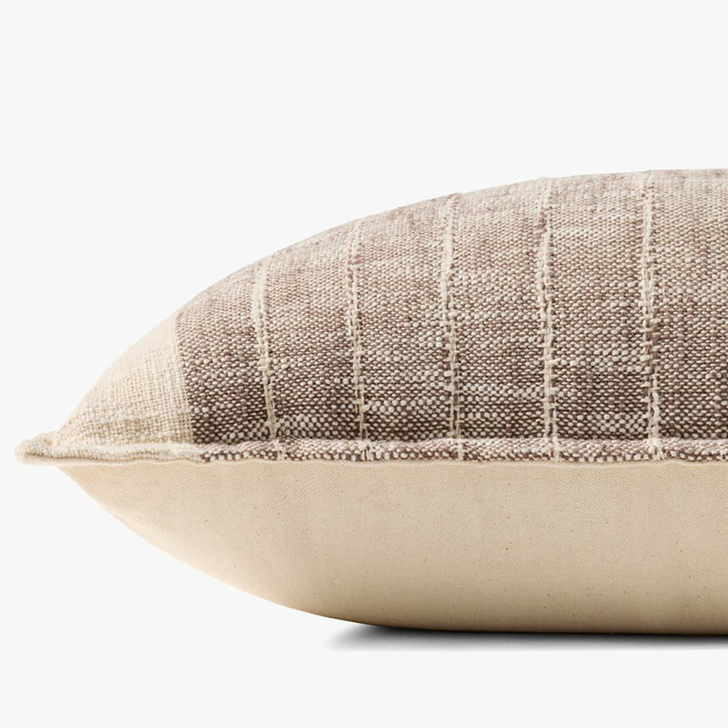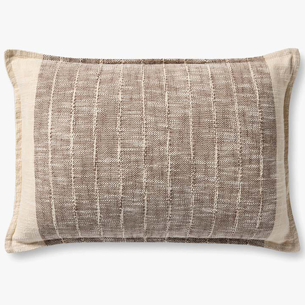 This neutral gray throw pillow features a geometric pattern that complements traditional, farmhouse, or coastal home decor, among so many other styles. The 16” x 26” large lumbar pillow is made of 100% cotton in India.