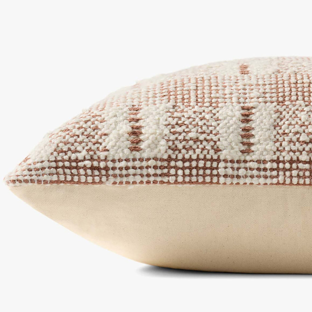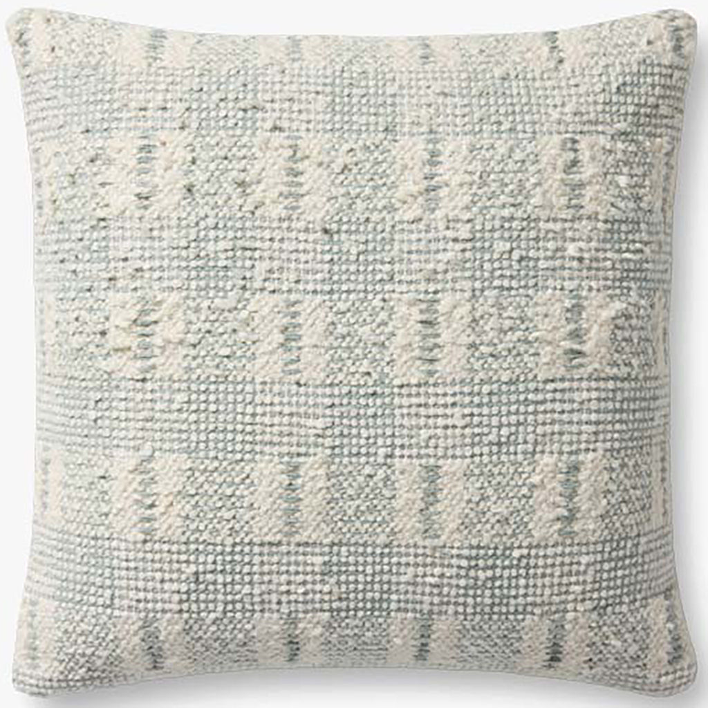 This neutral teal and beige throw pillow features a textured woven design that complements traditional, farmhouse, or coastal home decor, among so many other styles. The 18” x 18” square pillow is made of 100% cotton in India.