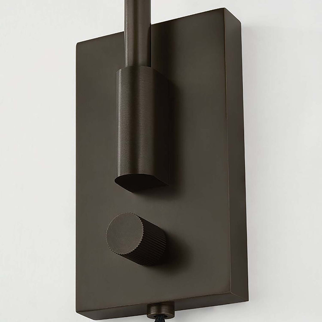 The Mitzi Yvette plug-in sconce uses a modern lens to reimagine vintage design motifs. The geometry of the metalwork has been simplified to basic lines and curves, with the arc-shaped piece above the shade serving as a handle for adjustments. Finished in creamy Soft Bisque, this design-forward sconce adds plenty of directional light to a desk or bedside.