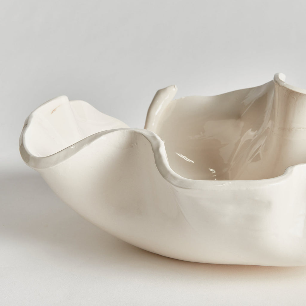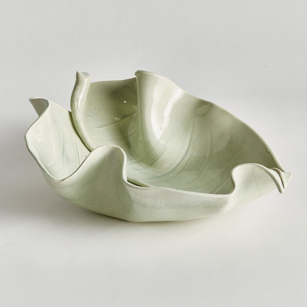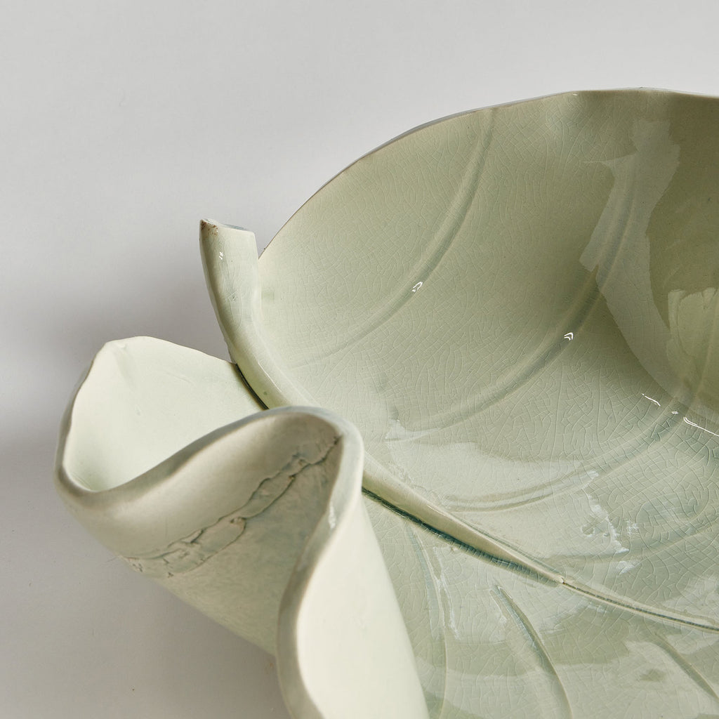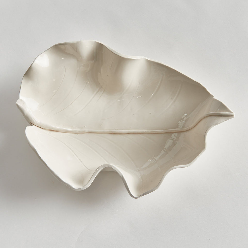 Each and every distinctive detail of the Moricento Leaf Sculpture is hand-sculpted by Italian artisans in Tuscany. A classic design in a soft white glaze. With an extraordinary craftsmanship passed down through generations, each piece is a true original. In grand scale, a dynamic centerpiece for feature table, kitchen island or mantel.