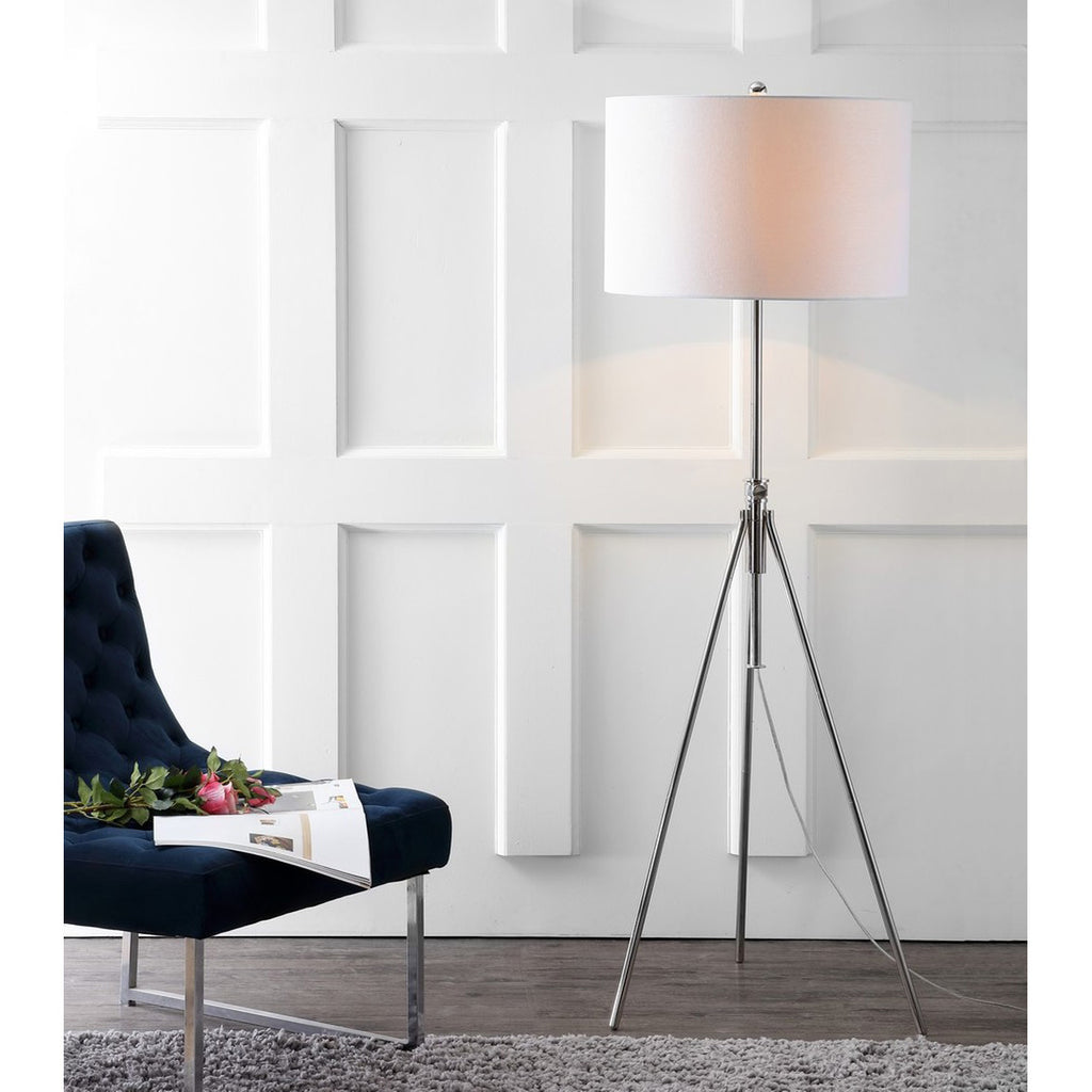 Inspired by the home of London’s star architect, this contemporary floor lamp is a classic. Designed with a chic Nickel finish and paired with a sophisticated White shade, it blends seamlessly into any living room or bedroom while adding sculptural style.