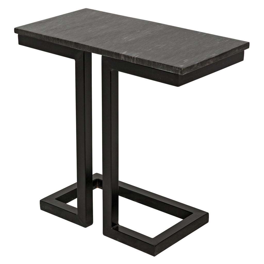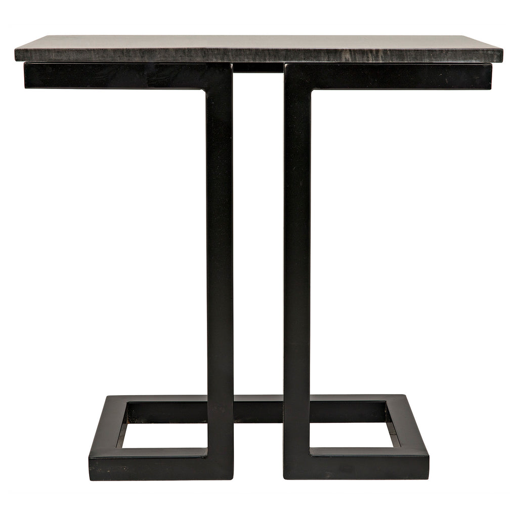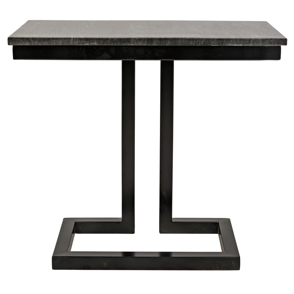 This elegant Noir table accents living rooms and bedrooms with contemporary function. Versatile to match a variety of aesthetics, this furnishing adds style to any space. Grecian inspired lines are updated with modern metallic finishes and rectangular tops created with solid slabs of quartz or marble. Artisan-crafted to honor the variances in color, pattern, texture, and veining in the natural stone, no two will be identical.