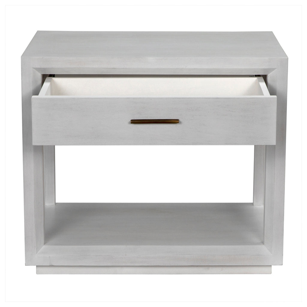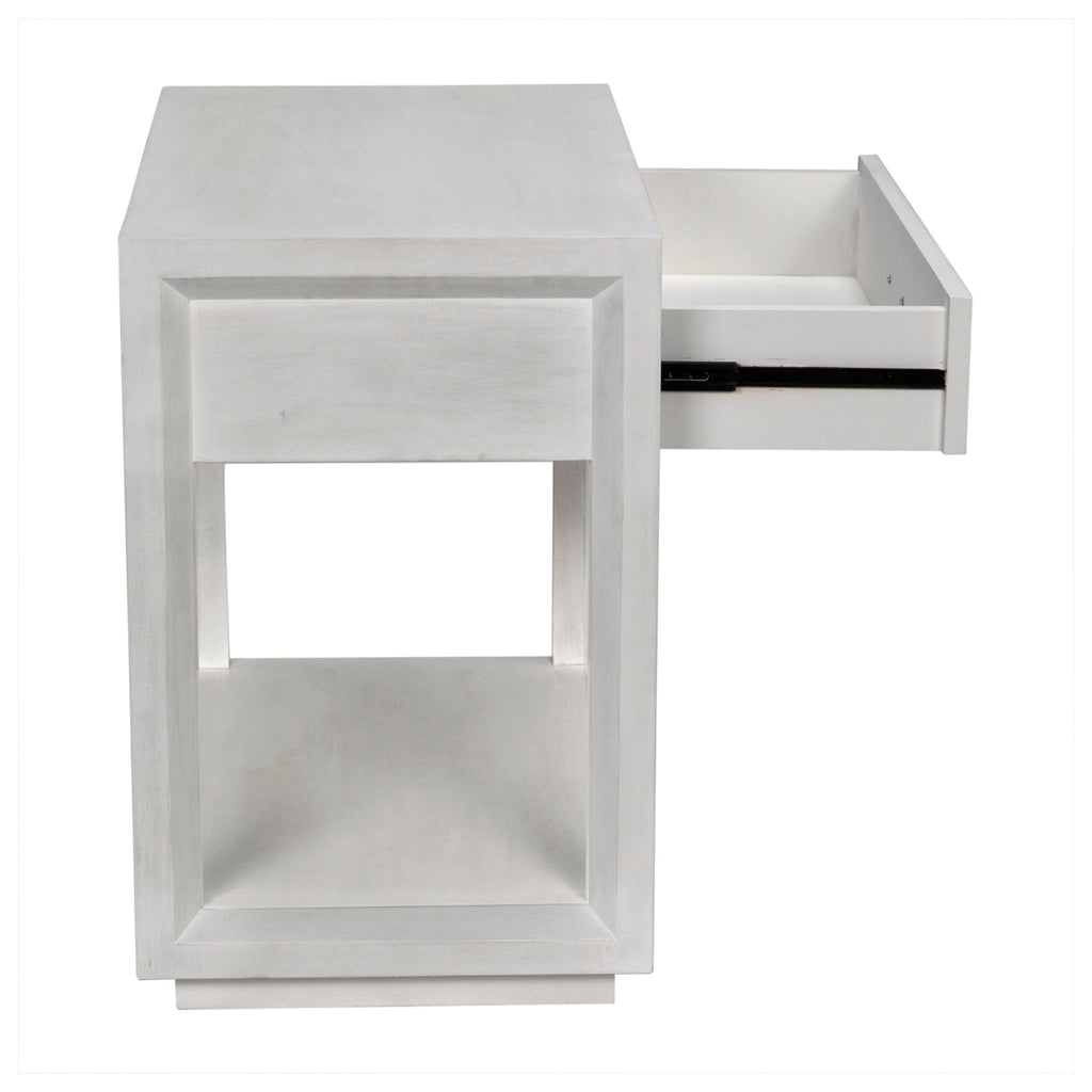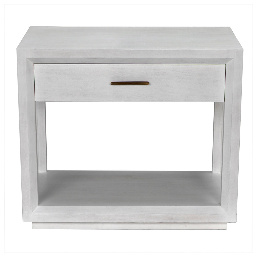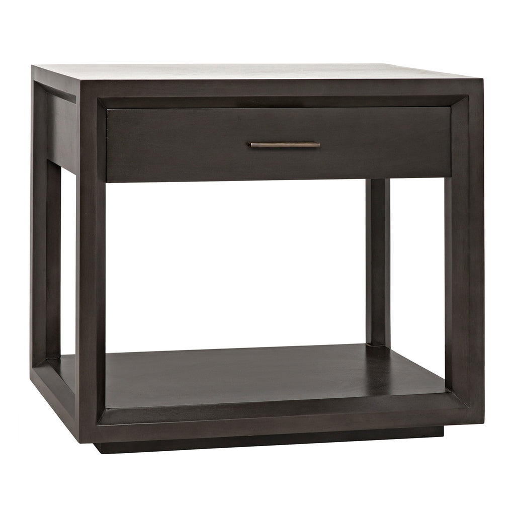 This elegant Noir table accents living rooms and bedrooms with contemporary function. Versatile to match a variety of aesthetics, this furnishing adds style to any space. Contemporary but not avant-garde, chic but not flashy, the Noir Antony side table is handcrafted of solid mahogany and expertly finished with a neutral stain and coordinating metal hardware.