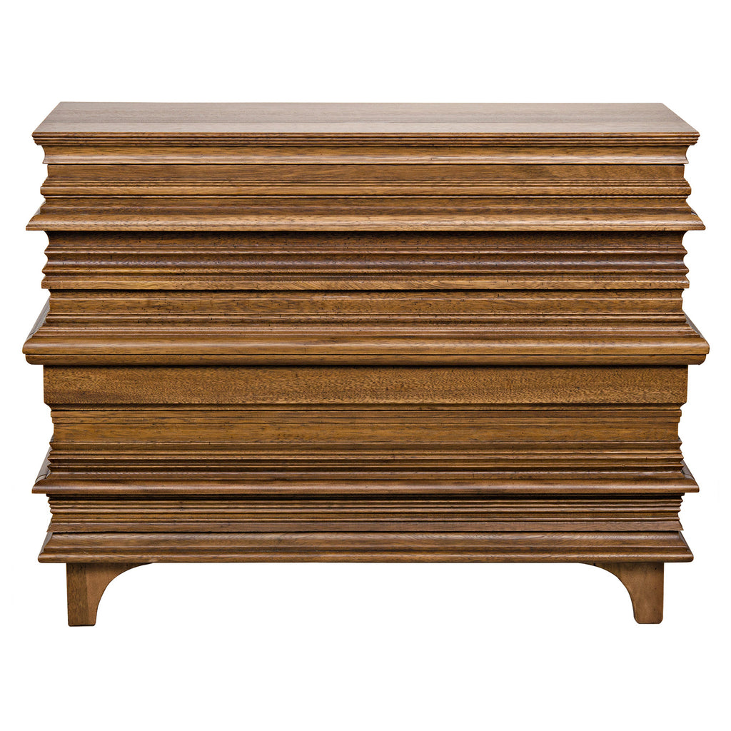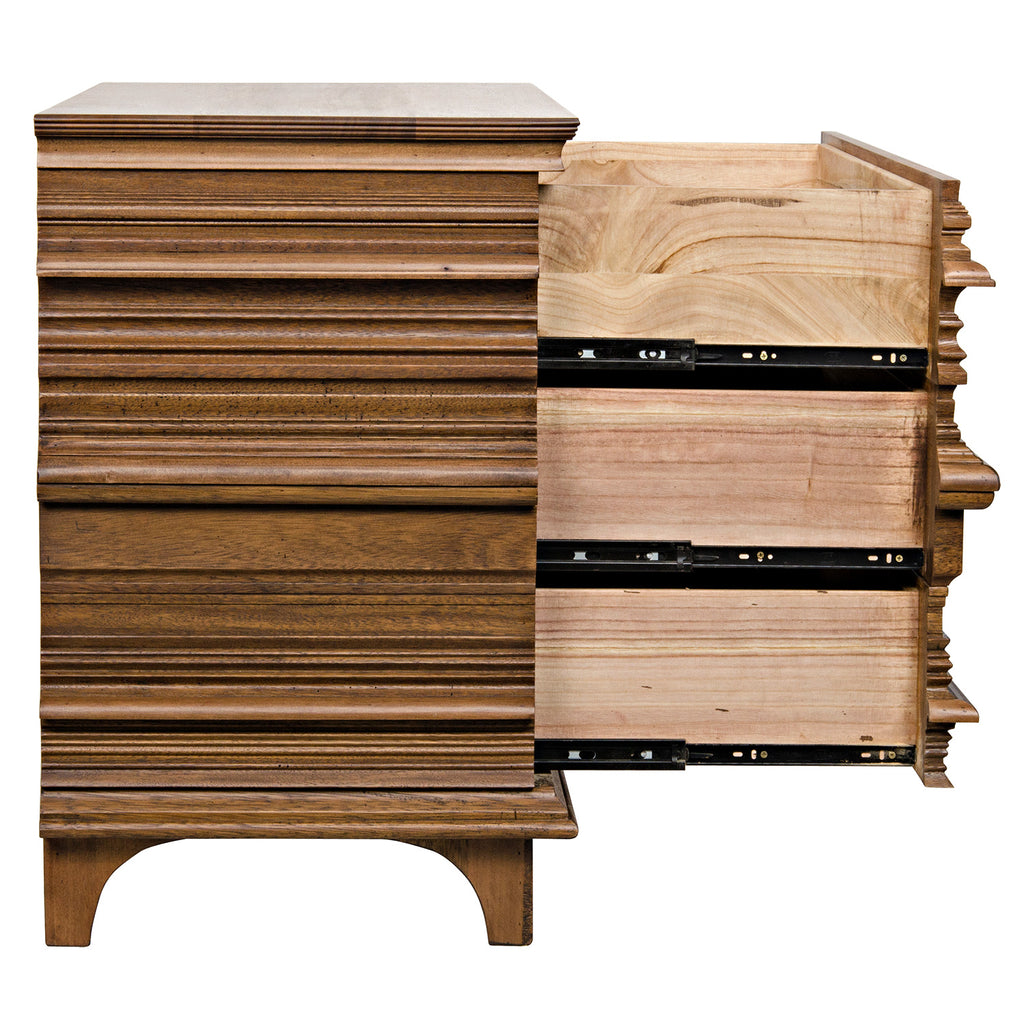 Store your everyday items in style with this contemporary dresser from Noir. Functional yet full of elegant detail, this furnishing updates any room with a bold statement. The bibliophile will love the striking resemblance to a stack of books, the aesthete will be drawn to its intricate lines, and the sophisticate will revel in its uniqueness. There is truly something for everyone in the exquisite designs in the Noir Bernard chest made from solid walnut.