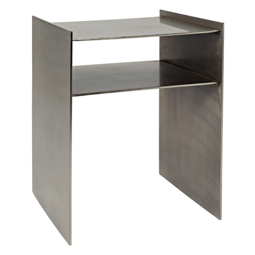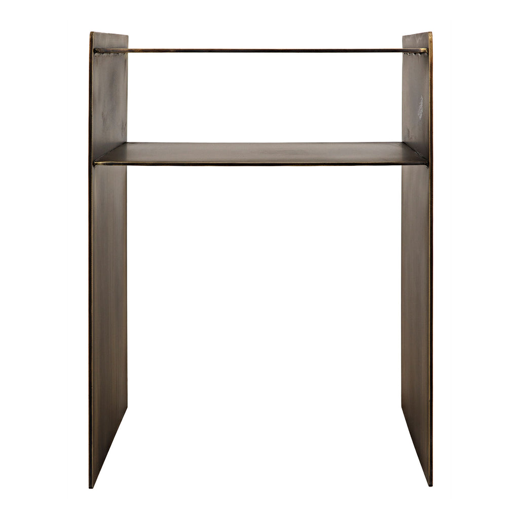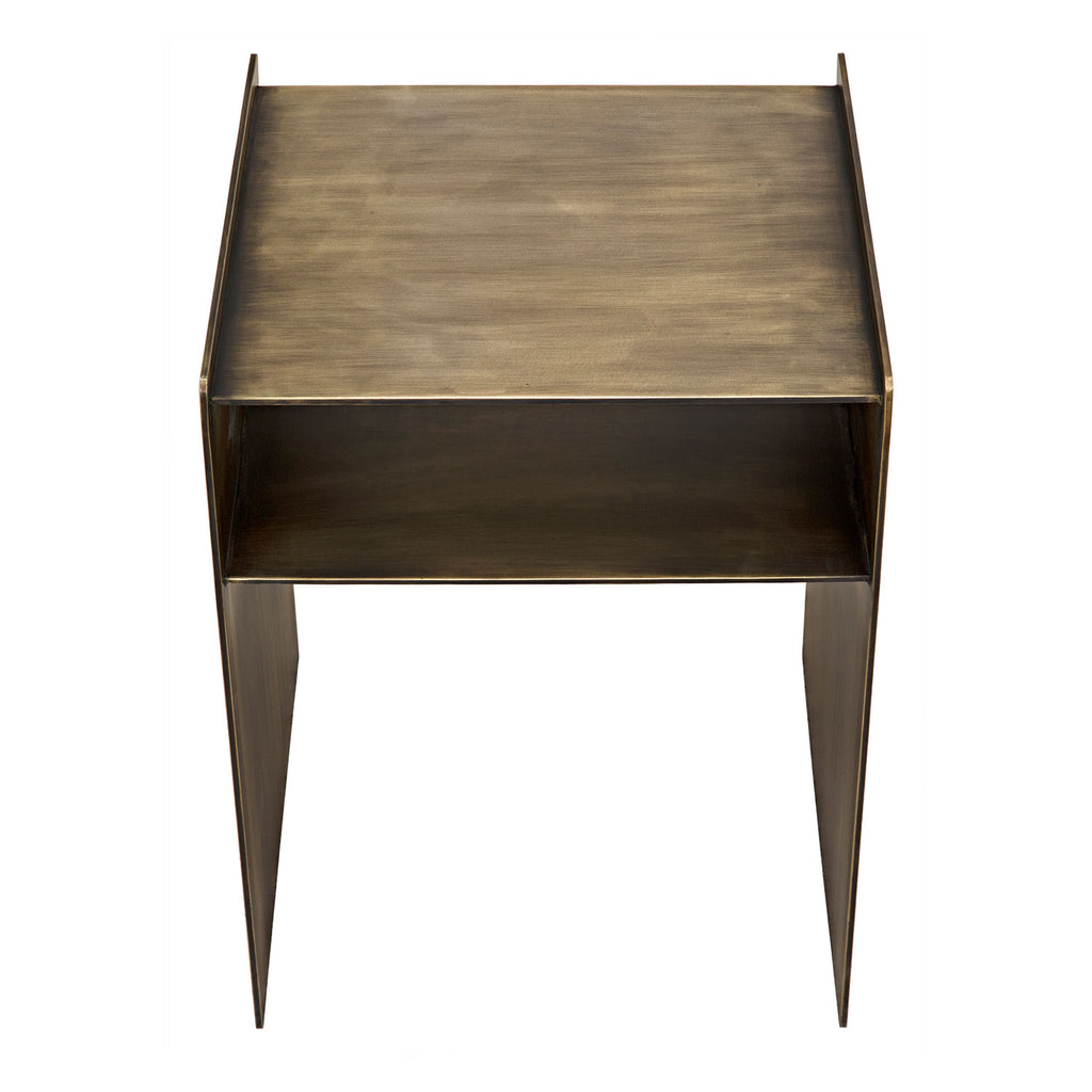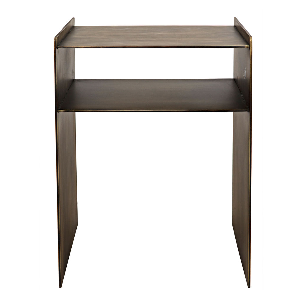 This elegant Noir table accents living rooms and bedrooms with contemporary function. Versatile to match a variety of aesthetics, this furnishing adds style to any space. Modern lines in weighty metal are contrasted by the sophisticated Aged Brass or Antique Silver finish on this versatile and functional accent table.