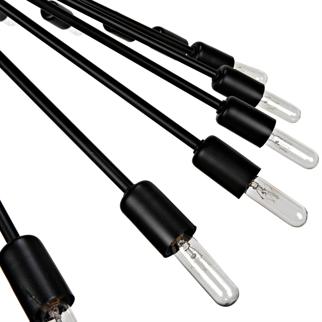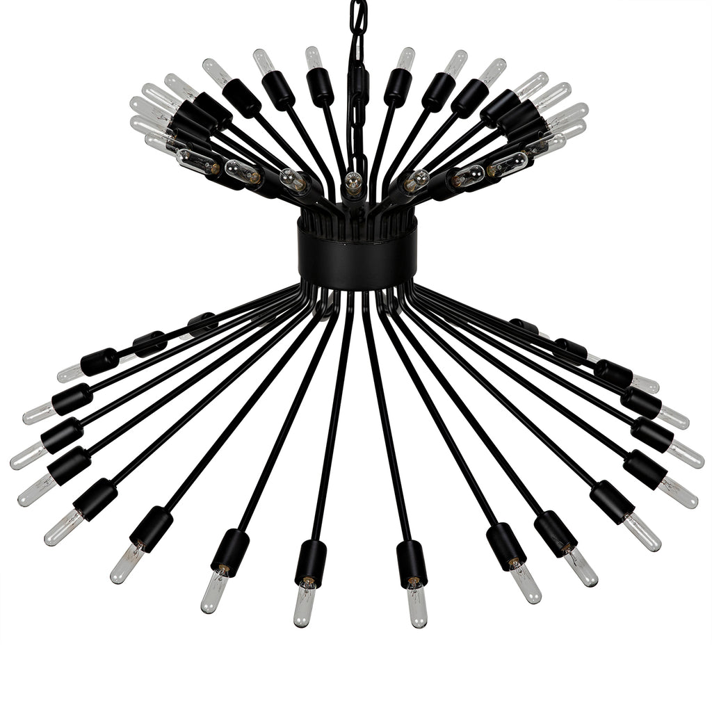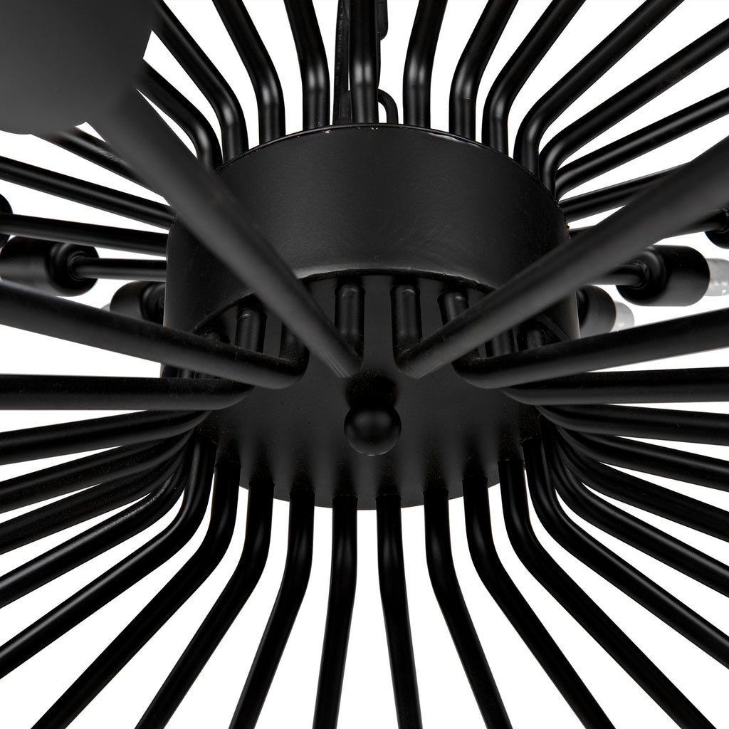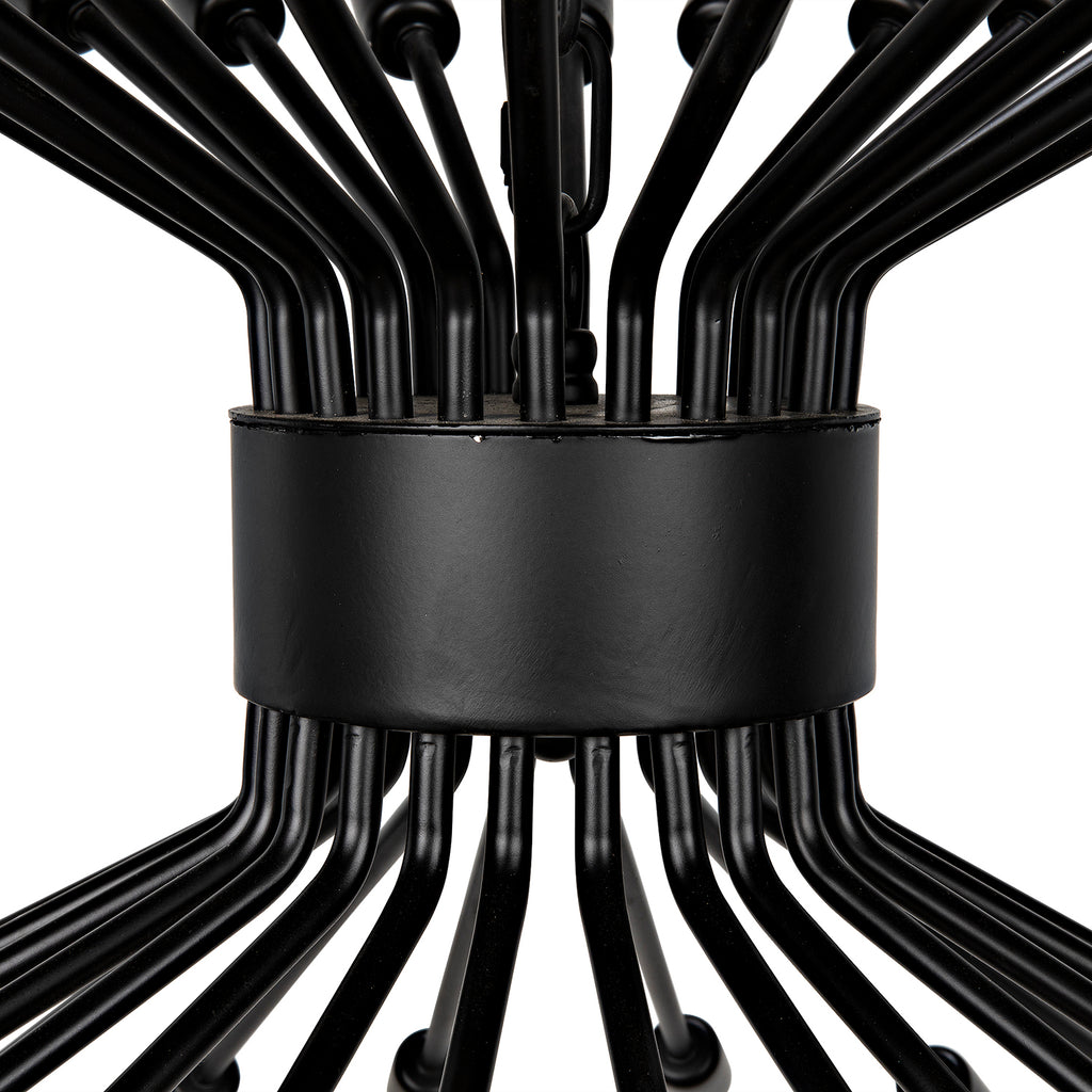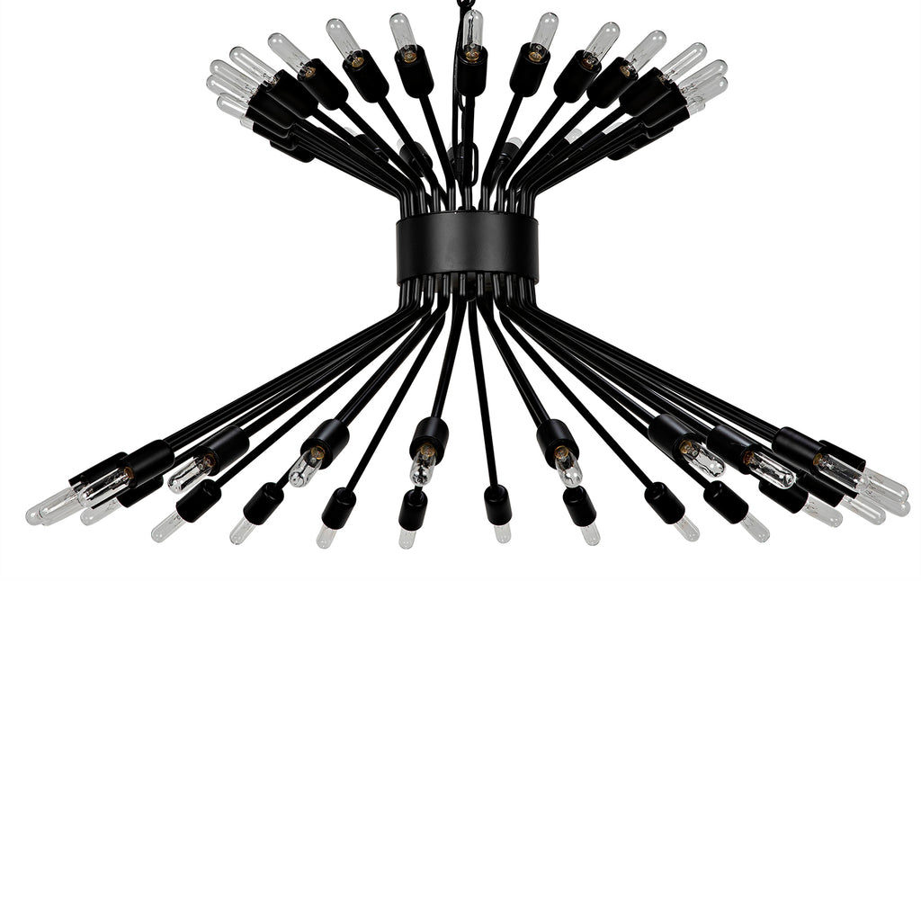 This spectacular, sculptural 48 bulb chandelier has been artisan crafted of matte black metal. Industrial, edgy, and attention demanding, it will stand out, and stun in, any modern decor.