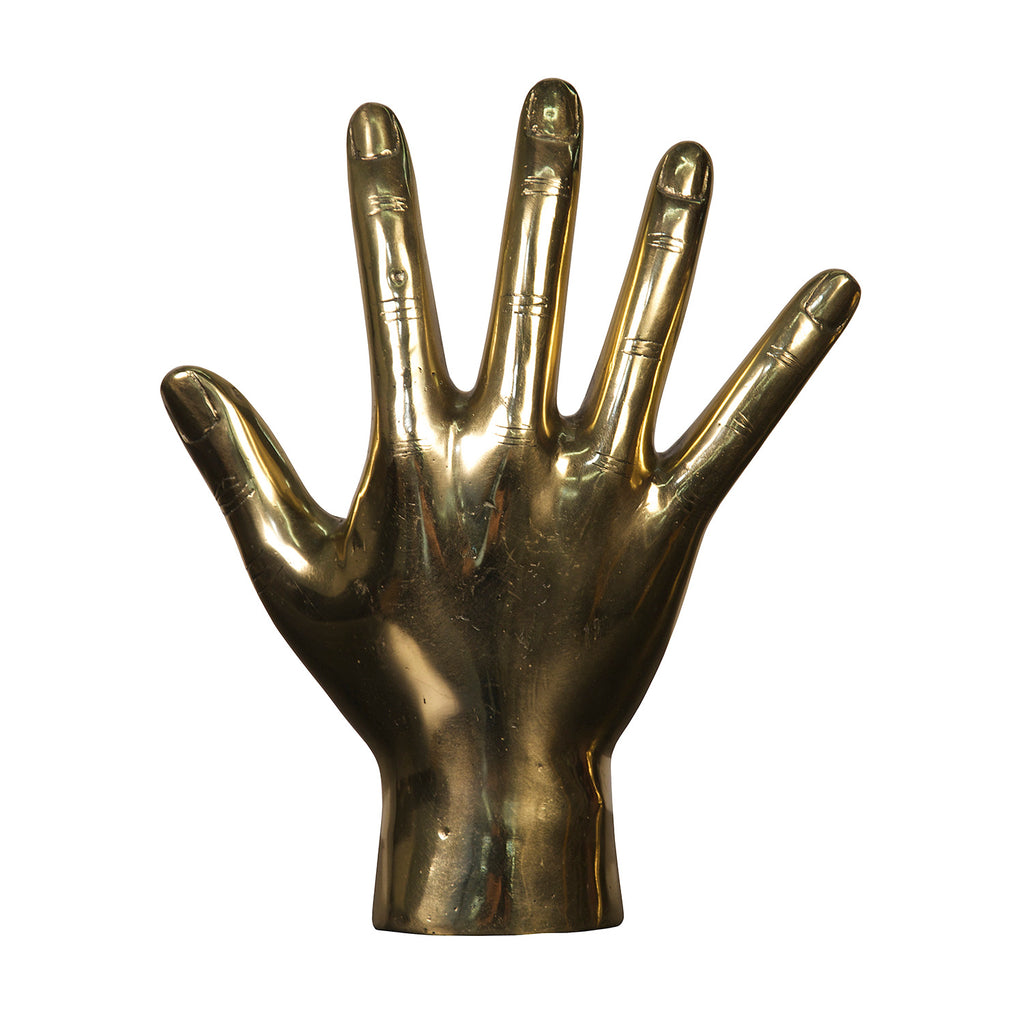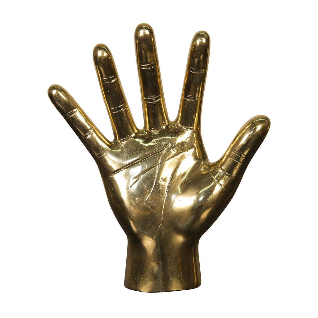 Take your everyday decor to the next level with this glamorous piece from Noir. Offering subtle nods to minimalist style, this effortlessly chic accent captivates atop a mantle. An open hand is rendered simply in an expertly weathered warm antique finish. Featuring raw, stylized lines, the intriguing Noir Open Hand sculpture is the perfect piece to add interest to any modern decor. Handcrafted of brass, no two will be identical.