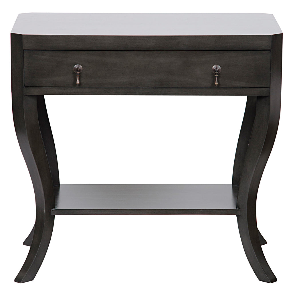 This elegant Noir table accents living rooms and bedrooms with contemporary function. Versatile to match a variety of aesthetics, this furnishing adds style to any space. Distinguished by its gracefully curved lines, charming cabriole legs, and solid mahogany construction, this deceptively simple but expertly crafted side table is available in three hand-applied designer finishes.