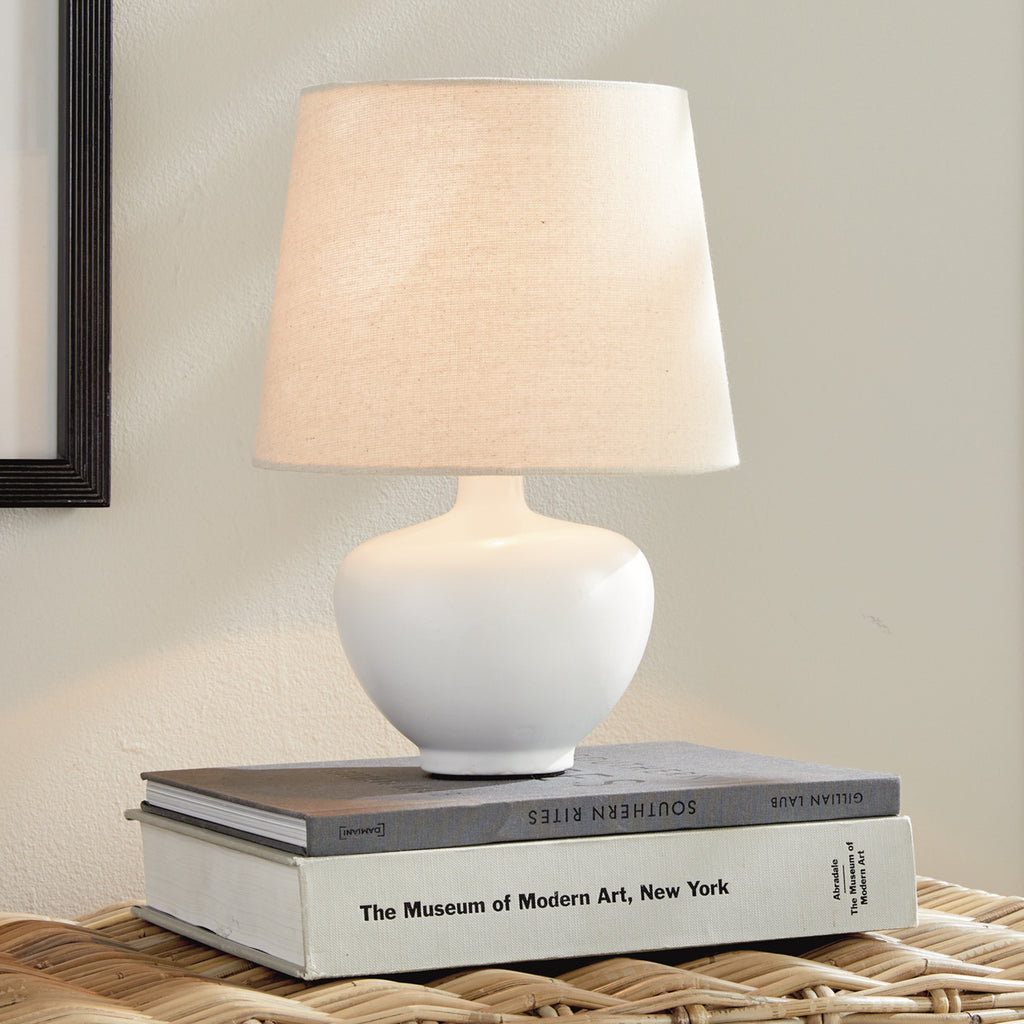 This sweet little ceramic lamp is a modern take on a classic silhouette. The well-scaled shade and matte finish complete the look. Perfect for kitchen counter, bookshelf or desk to brighten those small spaces.