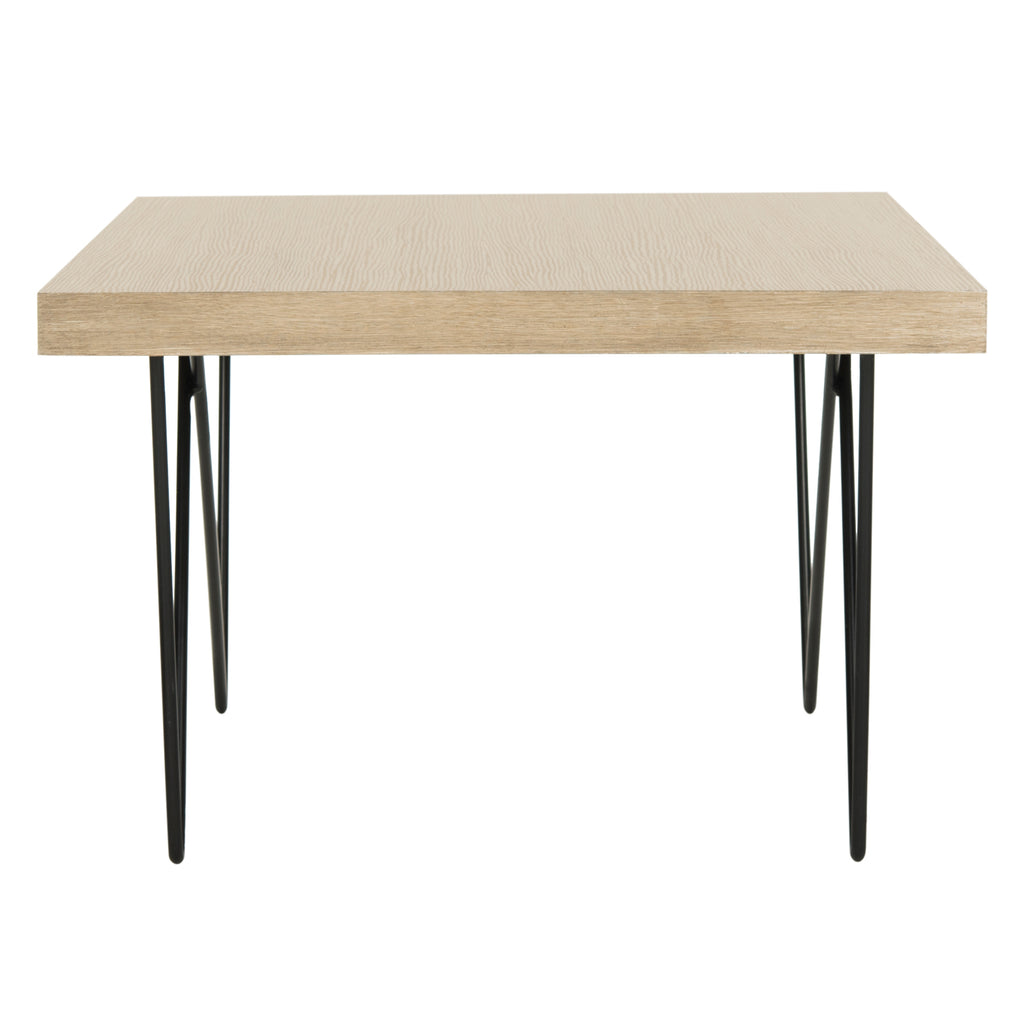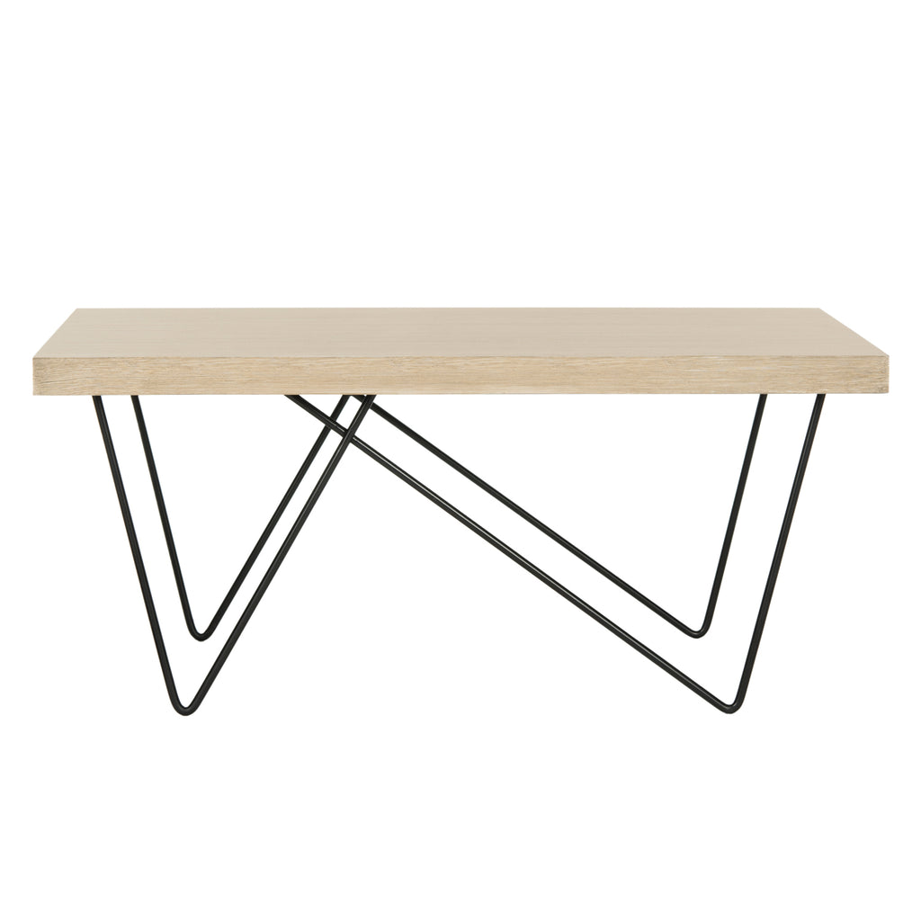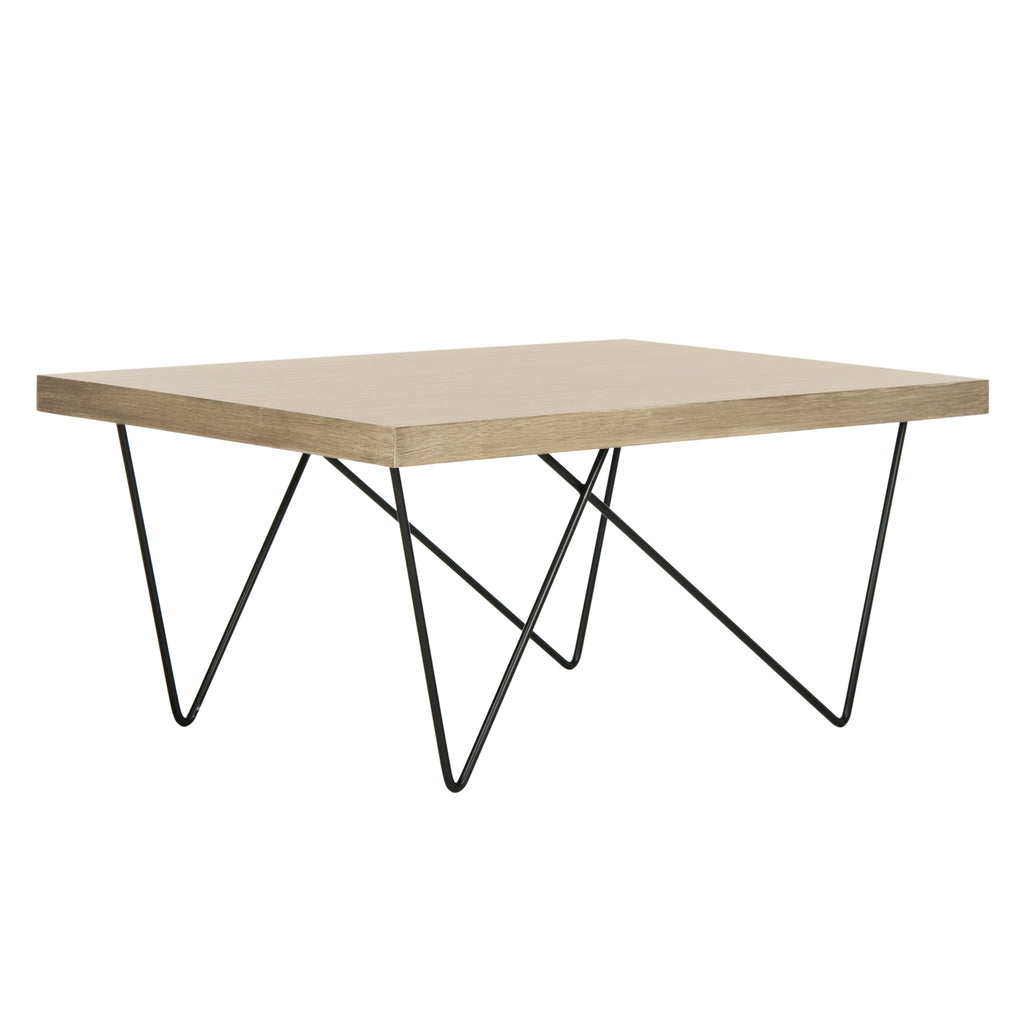 Inspired by a late French designer known for her spin on modern classics, this contemporary Nottoway coffee table is a favorite of architects. Its elegant asymmetric style is perfectly achieved with a pairing of slender elegant iron legs and a light grey palette.