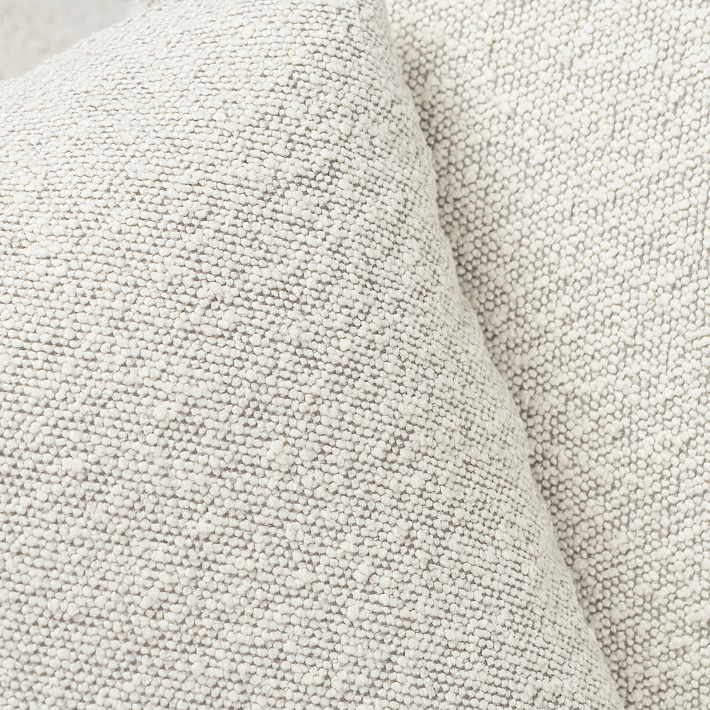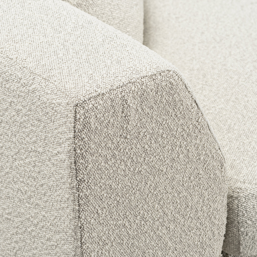 Showcasing a softly curved modern sofa-chaise silhouette and richly-textured upholstery. This luxurious sectional features tapered track arms and chaise wrapped in a bouclé fabric and matching back and throw pillows, completed with matte black metal legs. Style it with a throw blanket and accent pillows of your choice for a warm and collected look.
