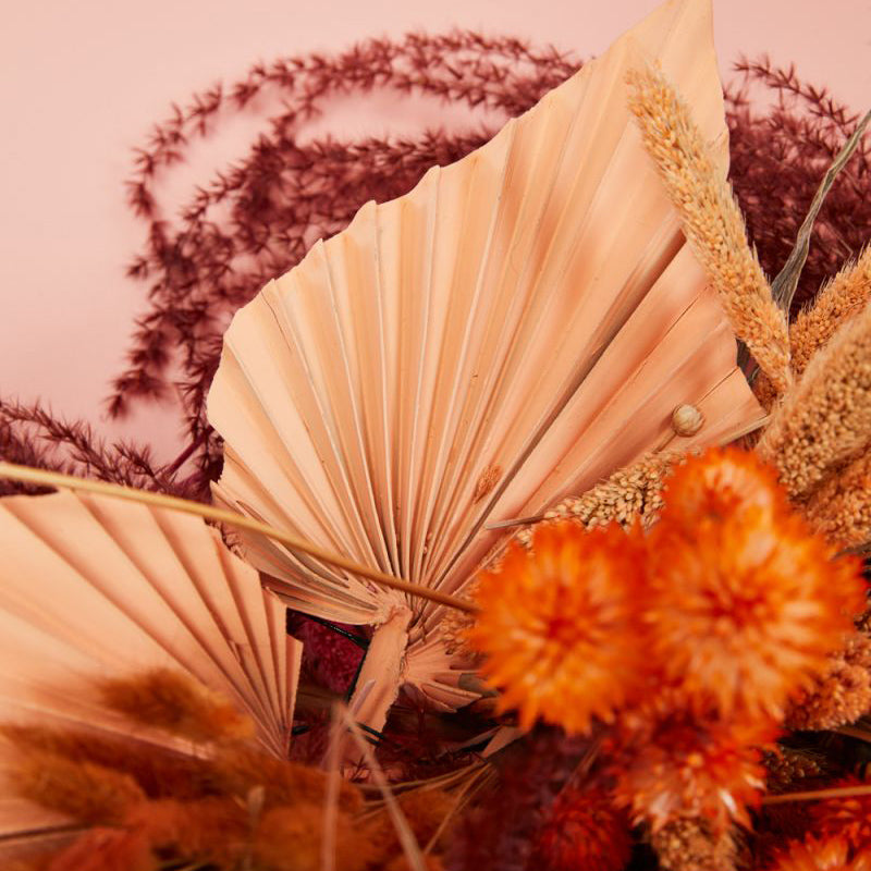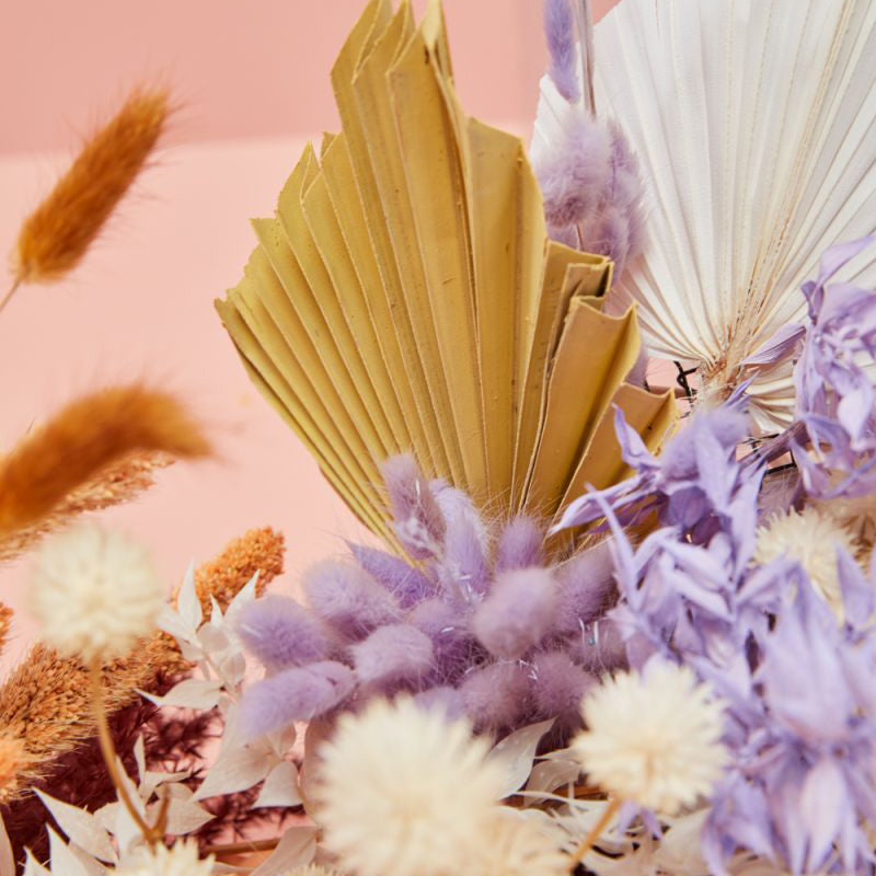Create whimsical, botanical bouquets with preserved florals, like the pack of 10 Painted Palm Spear. Featuring sturdy stems trimmed into palm spear shapes & dyed in an eye-catching periwinkle hue (expect some variation in color & palm spear size), these textured, trendy pieces add a playful pop of color to floral design & can be reused many times. Layer with our other dyed or neutral dried florals for a bright, forever arrangement.
