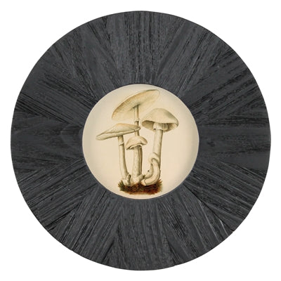 The radial placement of wood grain is accentuated with an ebony stain perfectly framing the picture it holds. Hangs with sawtooth cleat. Hangs vertically with sawtooth cleat