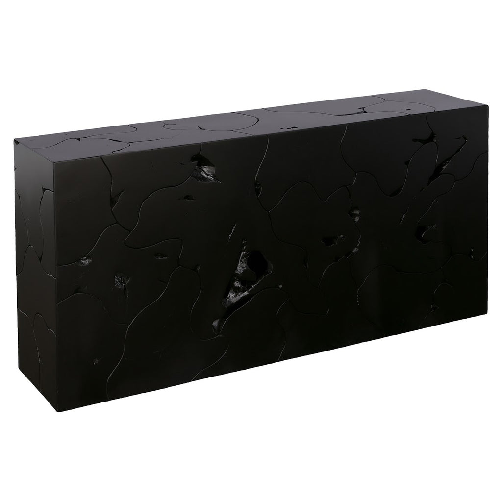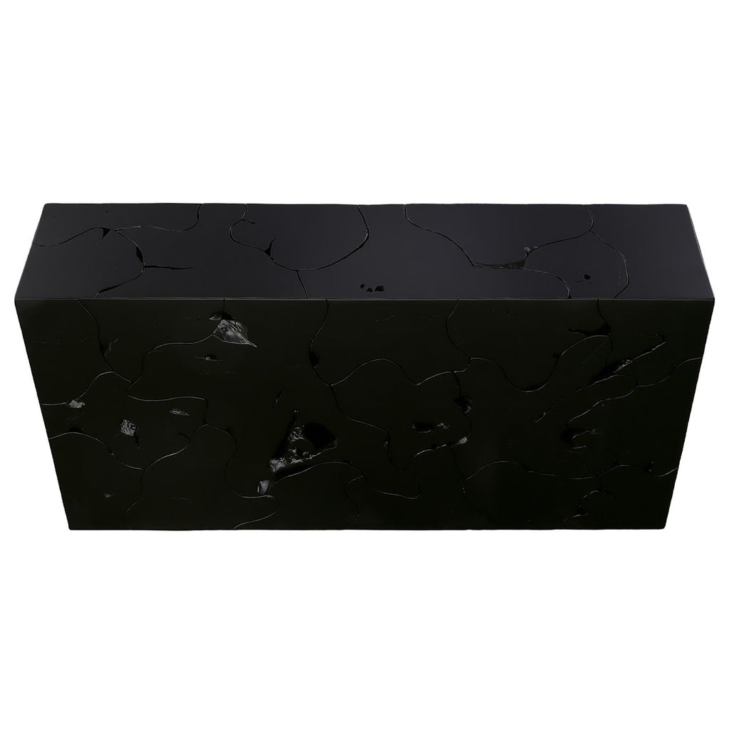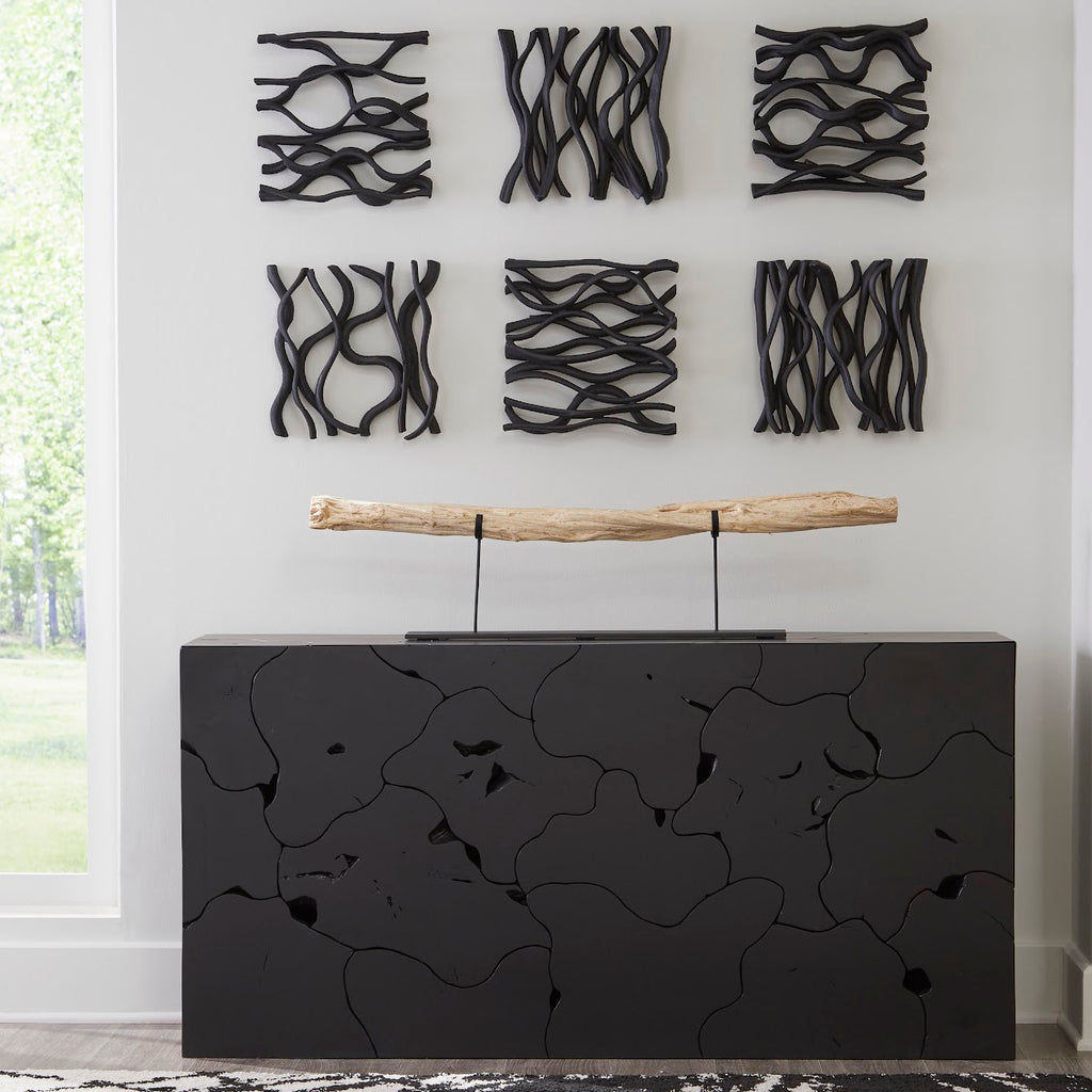 With exquisite craftsmanship, rescued scrap pieces of teak wood are hand assembled to create the Teak Slice Black Console Table. When a hint of texture is desired, this wood console table will bring it; it is also fitting for a number of design styles, including a contemporary, modern farmhouse, and industrial chic.