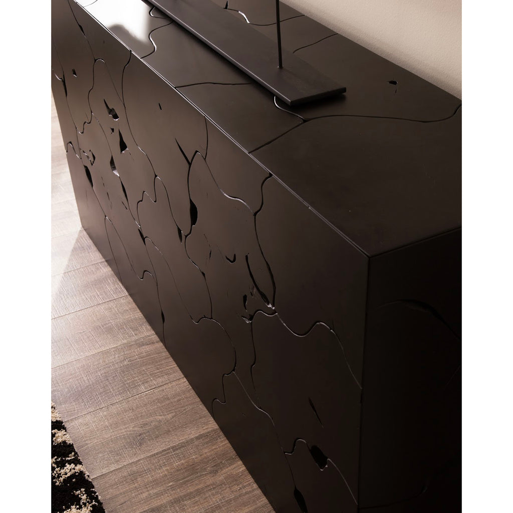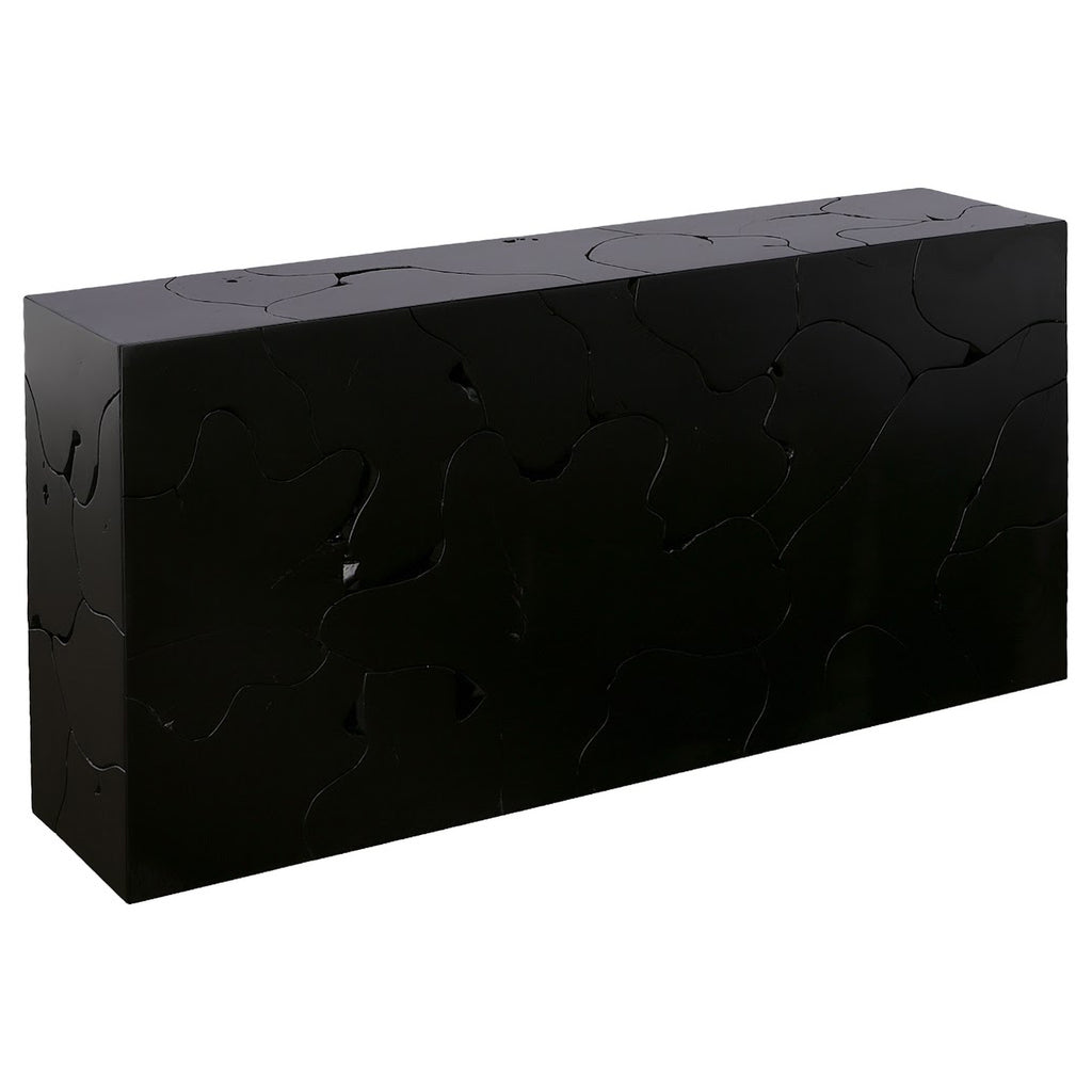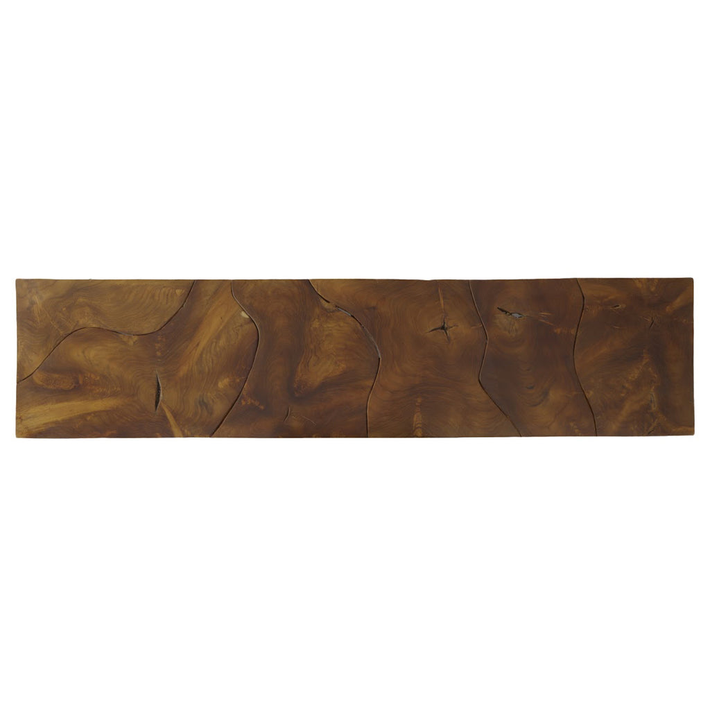 With exquisite craftsmanship, rescued scrap pieces of teak wood are hand assembled to create the Teak Slice Black Console Table. When a hint of texture is desired, this wood console table will bring it; it is also fitting for a number of design styles, including a contemporary, modern farmhouse, and industrial chic.
