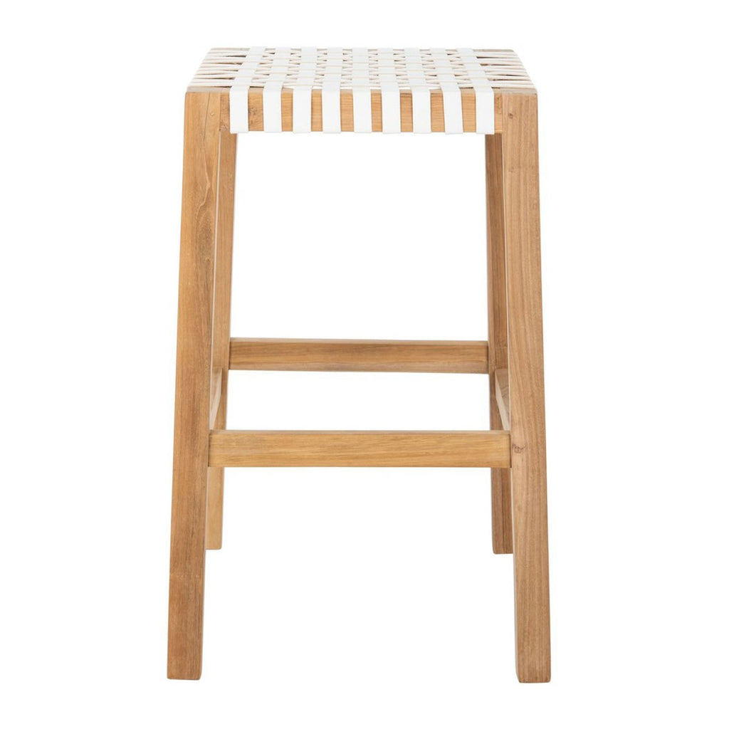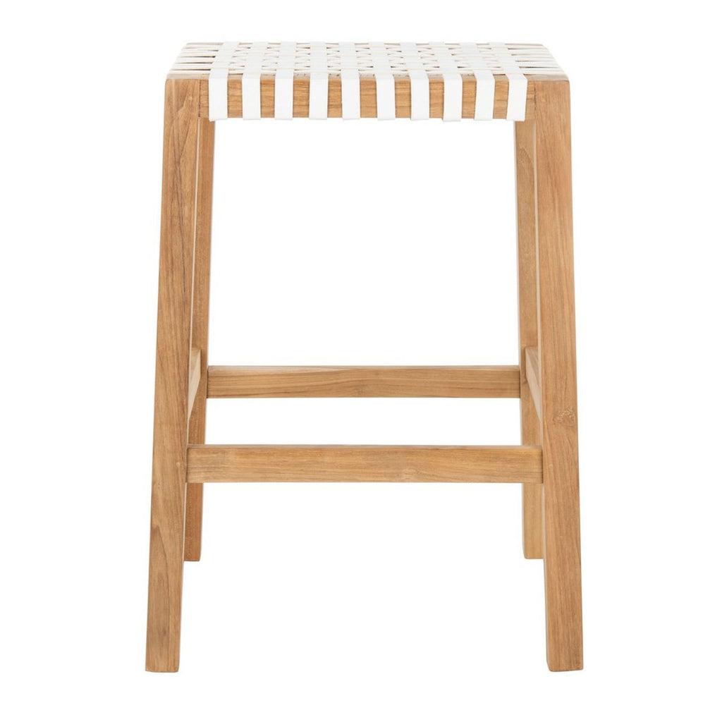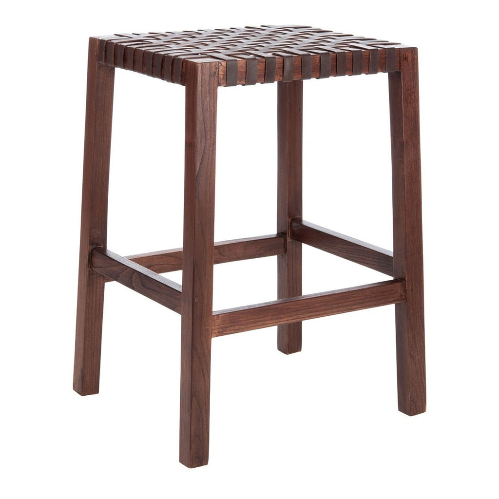 For those who want a breezy ambiance in their kitchen or dining room décor, this counter stool is the high-style solution. It is crafted of smooth teak in a rich natural finish that perfectly supports a seat of leather bands, ideal for bringing beach-like relaxation to any dining experience.