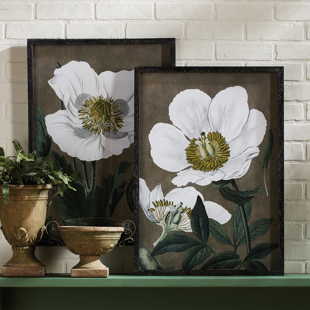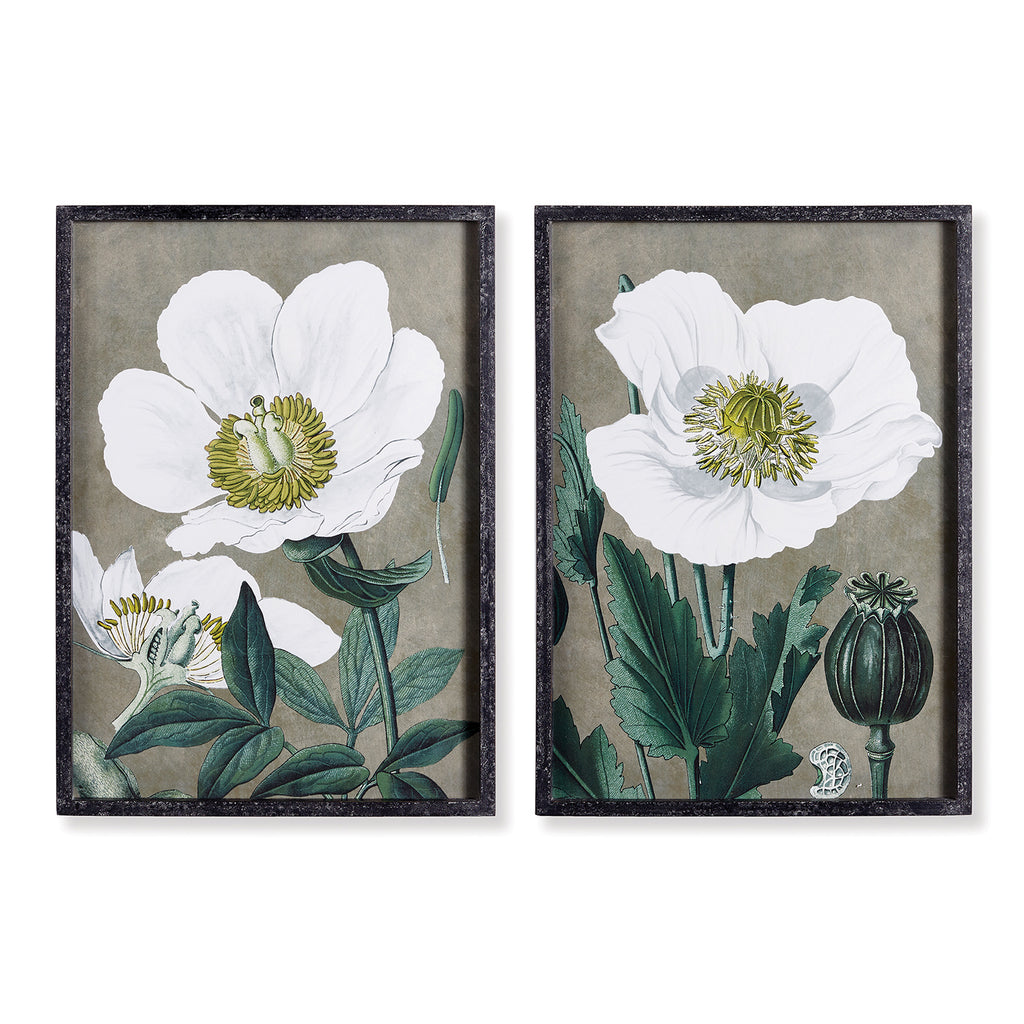 When found in nature, the poppy is quite inconspicuous. This pair of illustrations are anything but. In a clever use of color and scale, these Poppy prints add drama and sophistication.