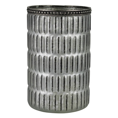 Illuminate your space with our Silver Glass Votive Holder, adorned with a captivating design. Perfect for creating a mesmerizing ambiance with its beautiful illumination.
