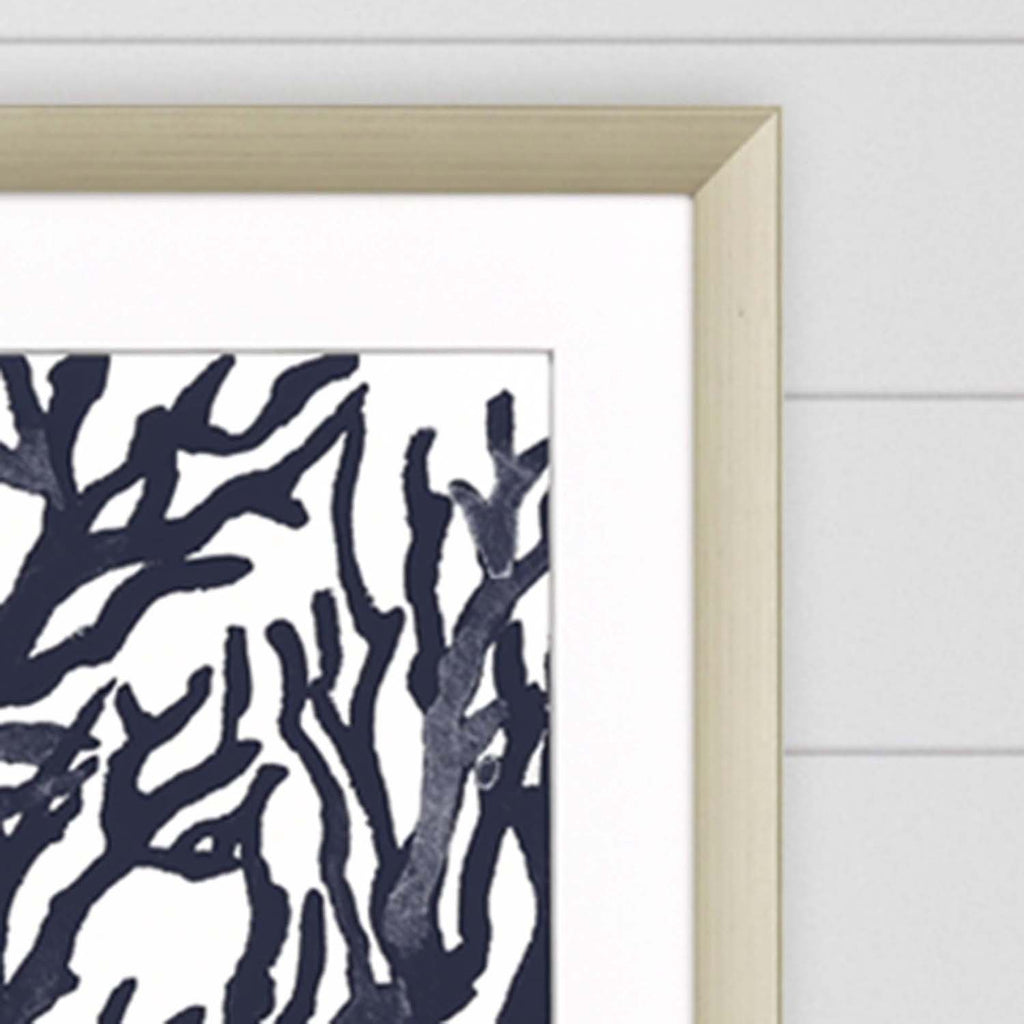 Sea coral is matted in ultra thick museum core white with a hand painted silver bevel. Framed in a warm silver molding. Sold as set of two.