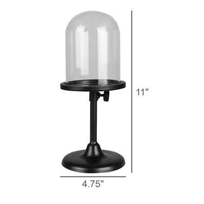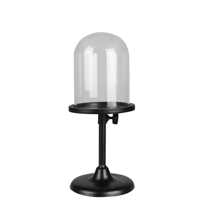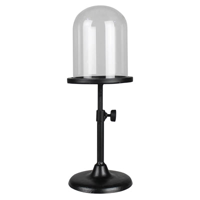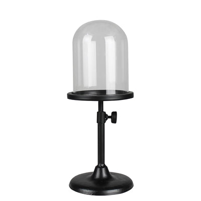 A telescoping metal base elevates what is featured in the glass dome to new heights. Extends to 13.5in height