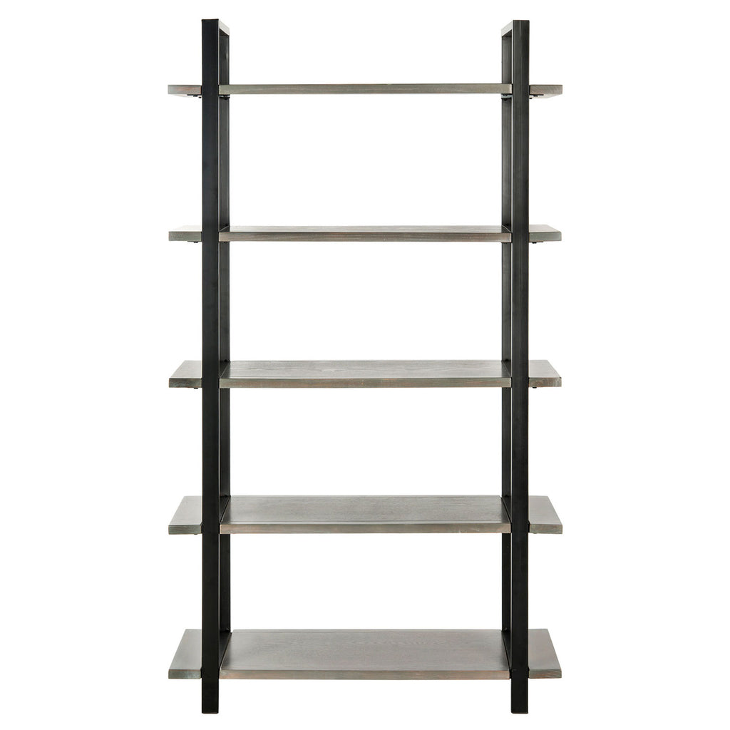 Industrial and contemporary, this étagère boasts brown-toned elm shelves that seem to float on wrap-around frames of dark metal. Ideal for any room in the home and perfect for the office, this sophisticated piece makes a statement on its own and a dramatic architectural look in pairs. Use the Scott étagère to store favorite books and curios in style.