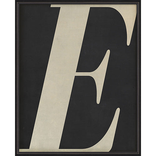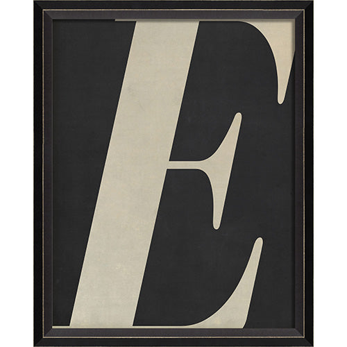 Letter E White on Black Framed Print