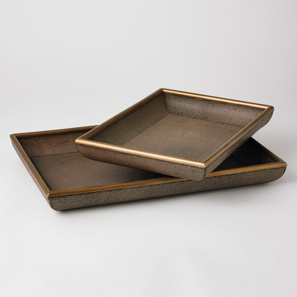 The Studio A Churchill tray is a faux Shagreen Leather Trays with Wood trim. Available in two sizes.