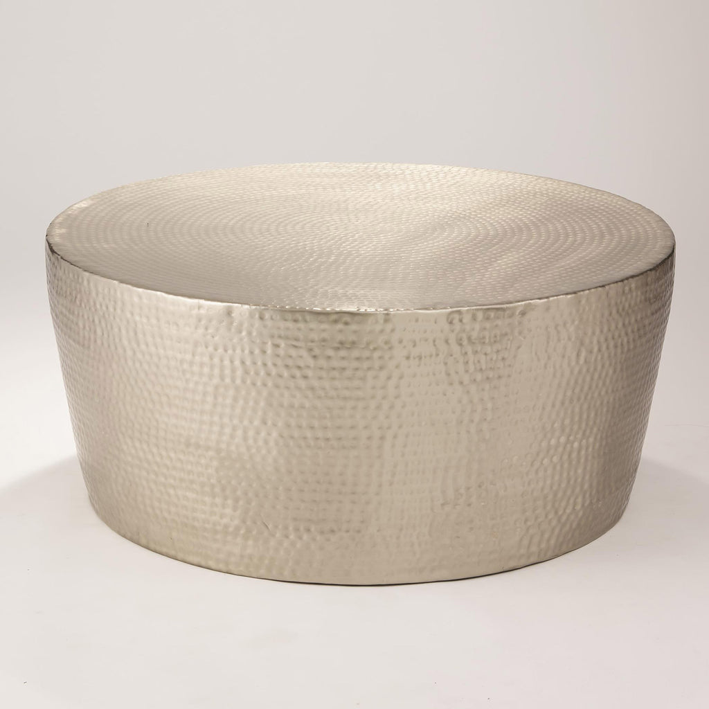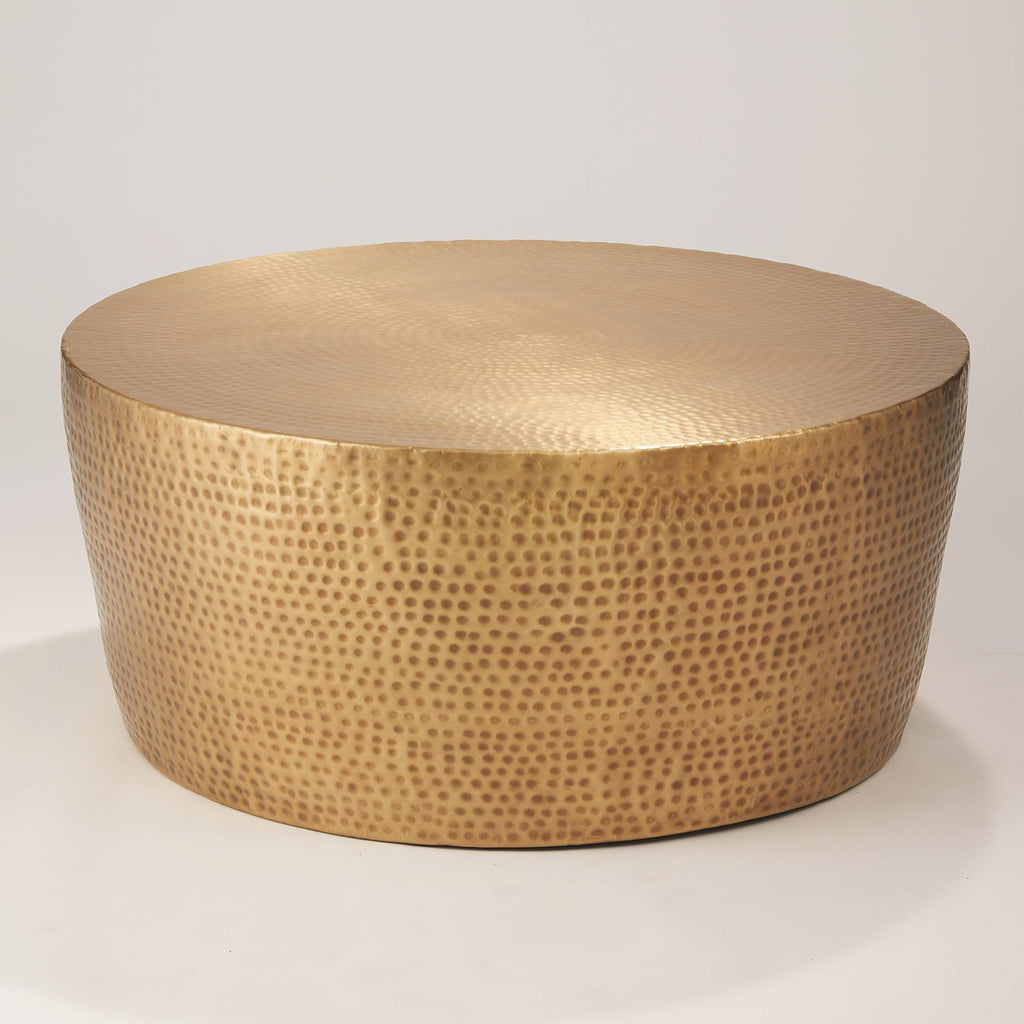 Hand hammering brings out rich detail of the solid brass sheet in the Izmir Cocktail Table.