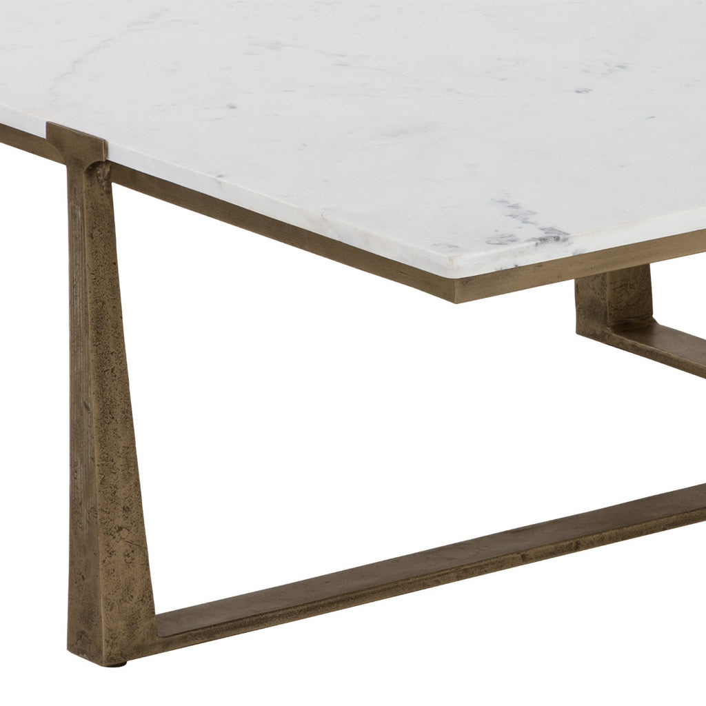 Inspired by mid-century design, the Cowell Coffee Table features a chic, minimal aesthetic that will elevate any room. The powder-coated antique brass finished legs give off a rustic sensibility that contrasts with the cool white marble top.