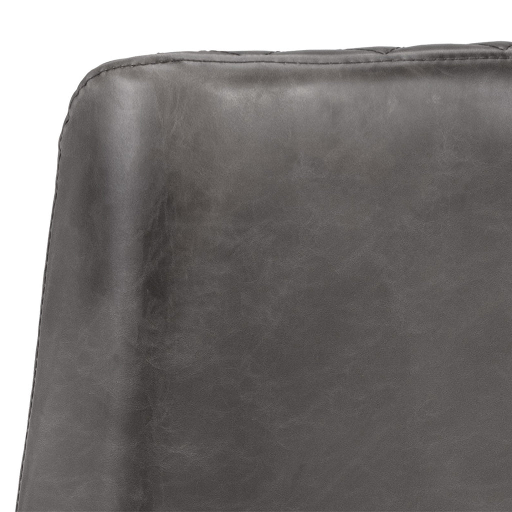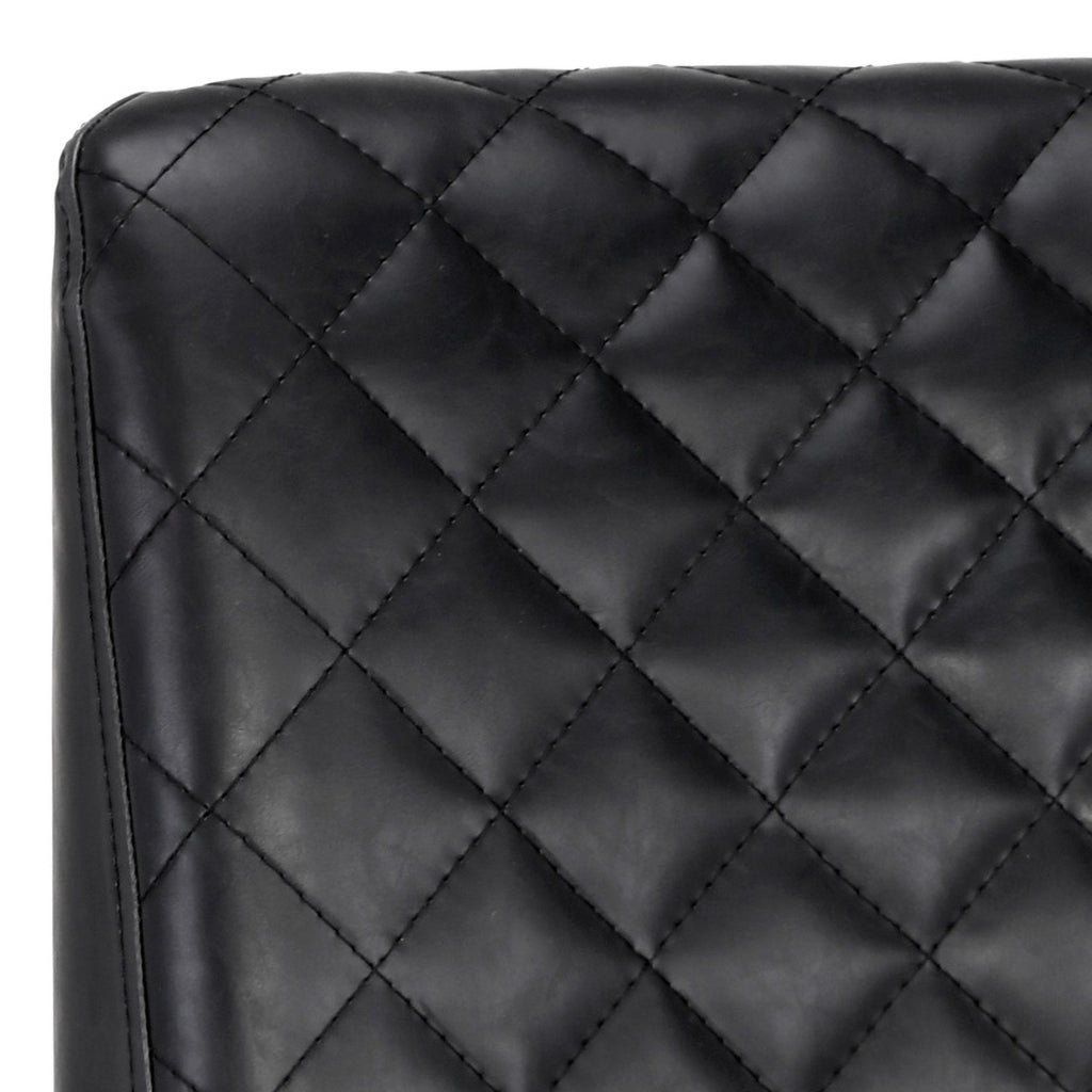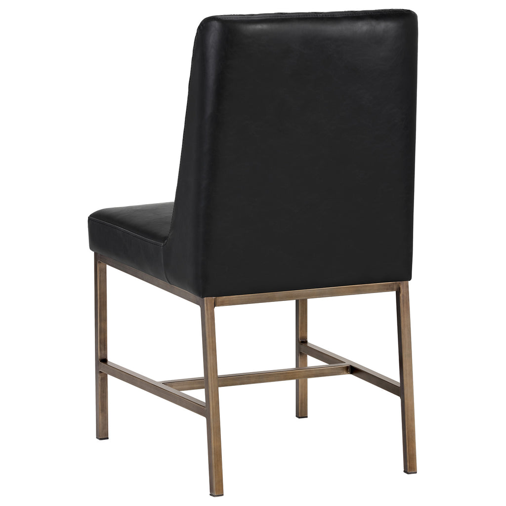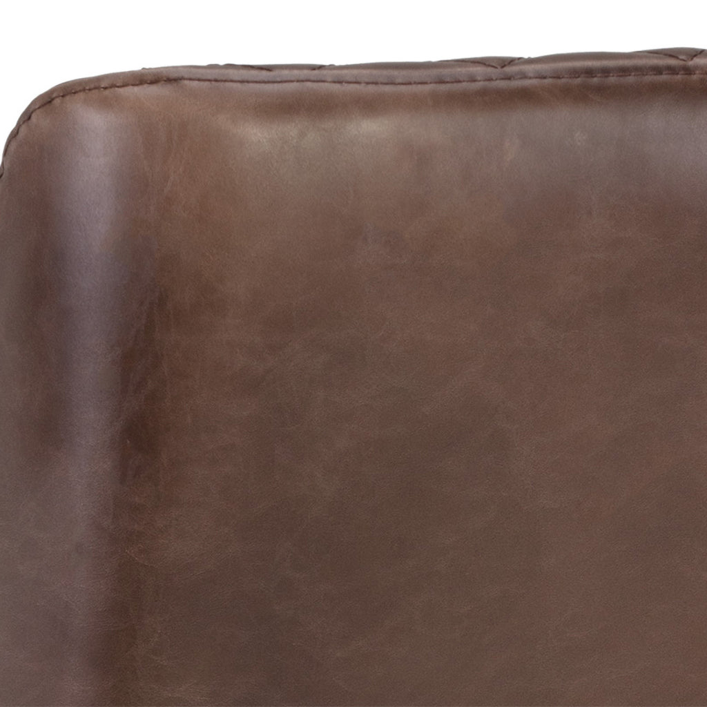 Invigorate dining spaces with this classic dining chair. Features beautiful diamond stitching on the interior seat back and an antique brass frame steel frame.