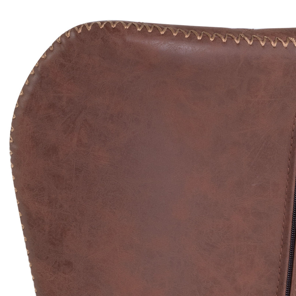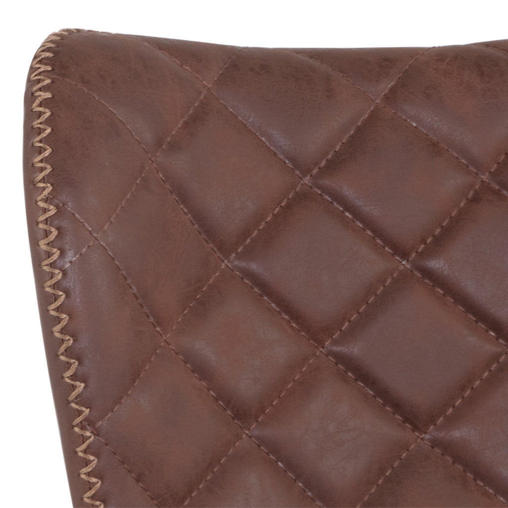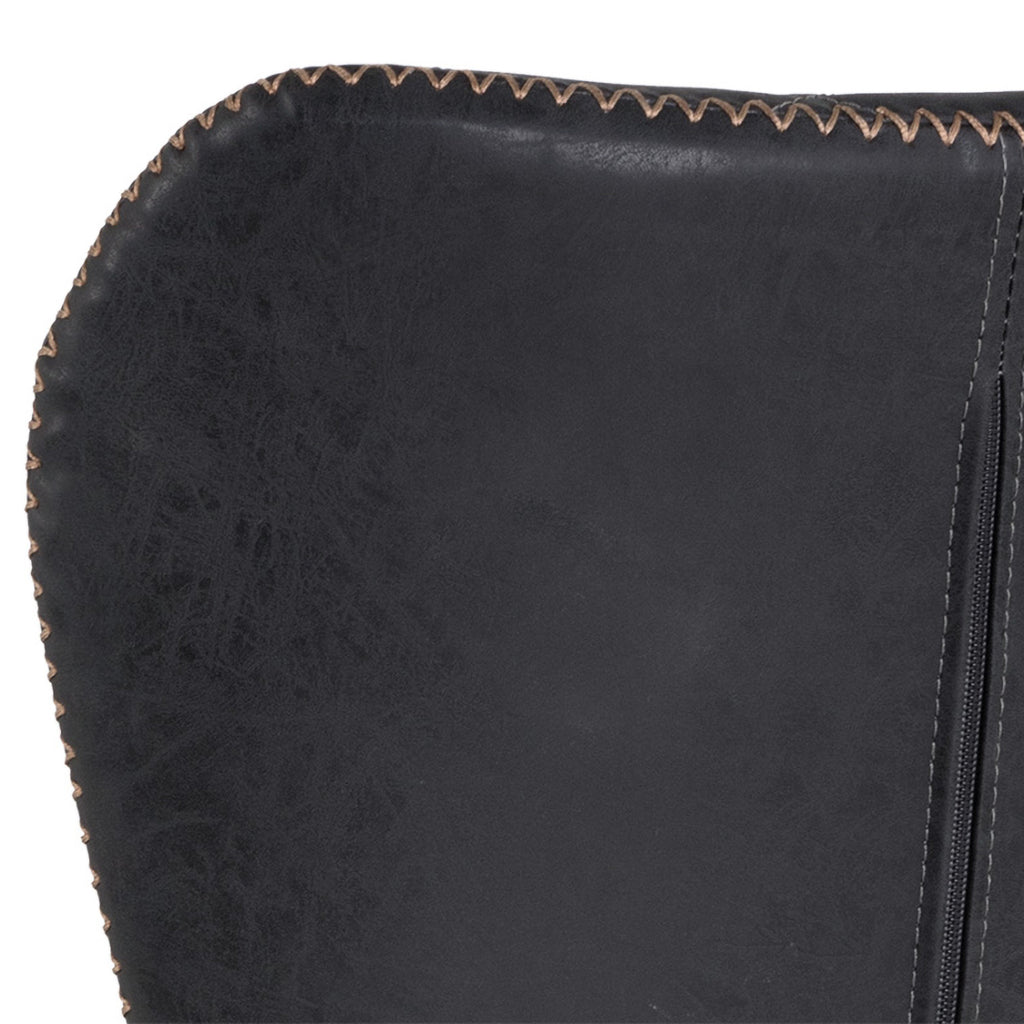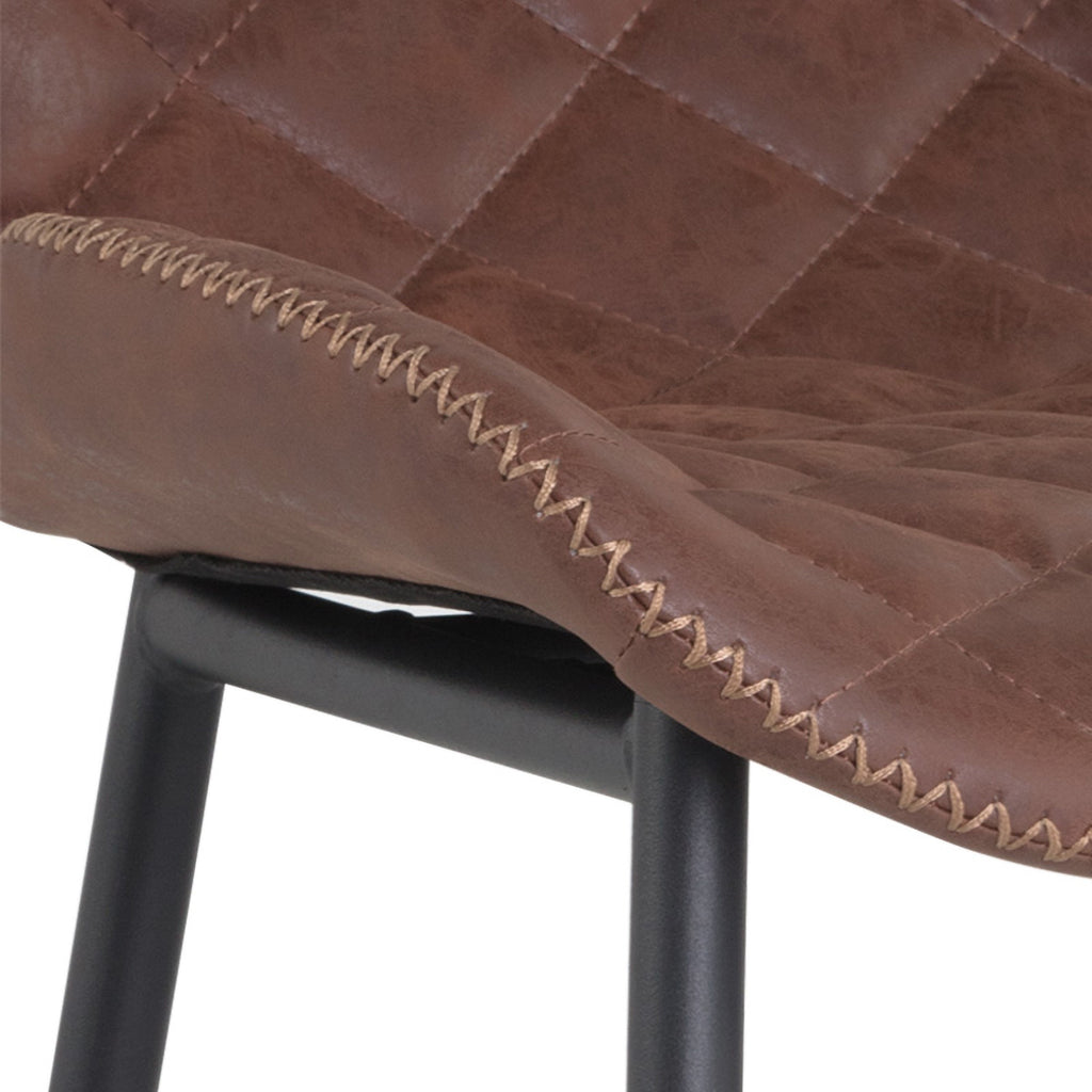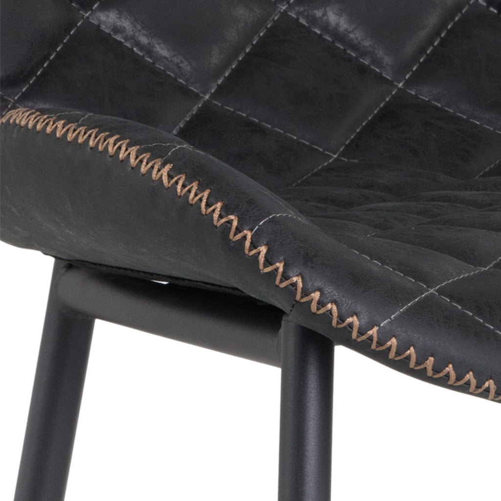 A stylish barstool featuring a sculpted diamond-stitched seat and exposed zig-zag stitching along the seat frame. Stocked in faux leather with black steel legs. Stretchers in a champagne gold painted finish complete the look. Suitable for various dining, kitchen and bar spaces of all sizes.