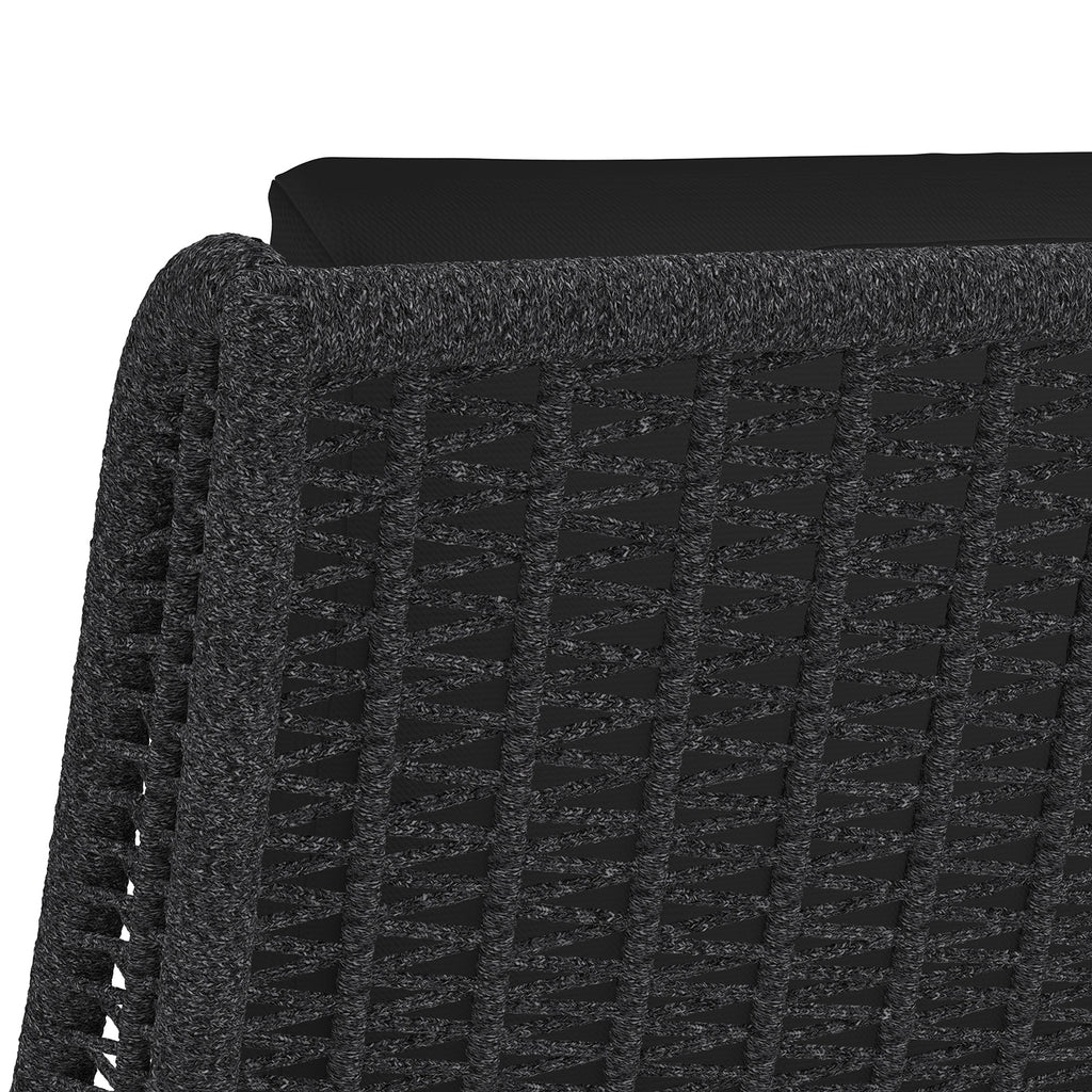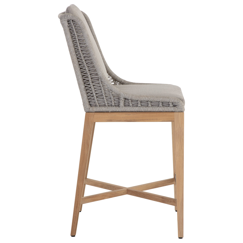 Create a modern outdoor dining space with this beautiful counter stool. Features a durable arashi black fabric seat and dark greymix weave exterior with a natural teak wood frame.