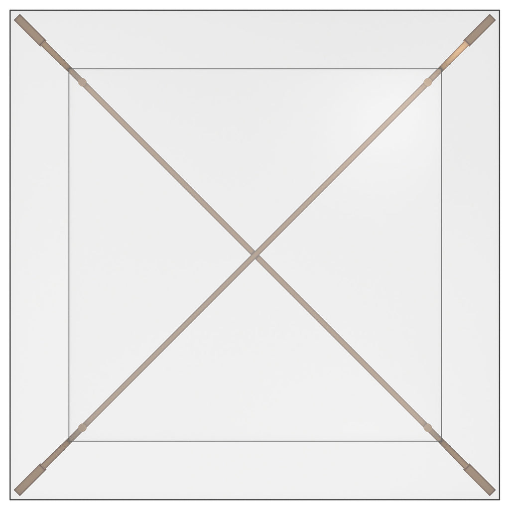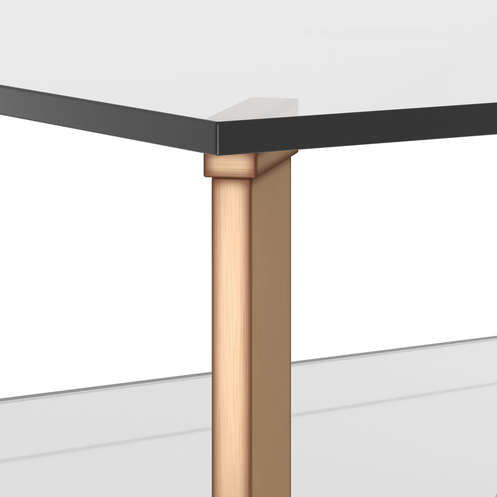 A sleek and modern square coffee table. Made with a tempered glass top and bottom shelf perfect for displaying decor and accents. Finished with an antique brass stainless steel frame. Also available in a rectangle shape, along with coordinating end table.