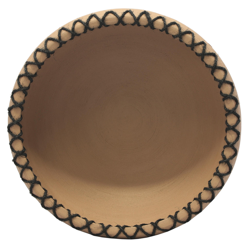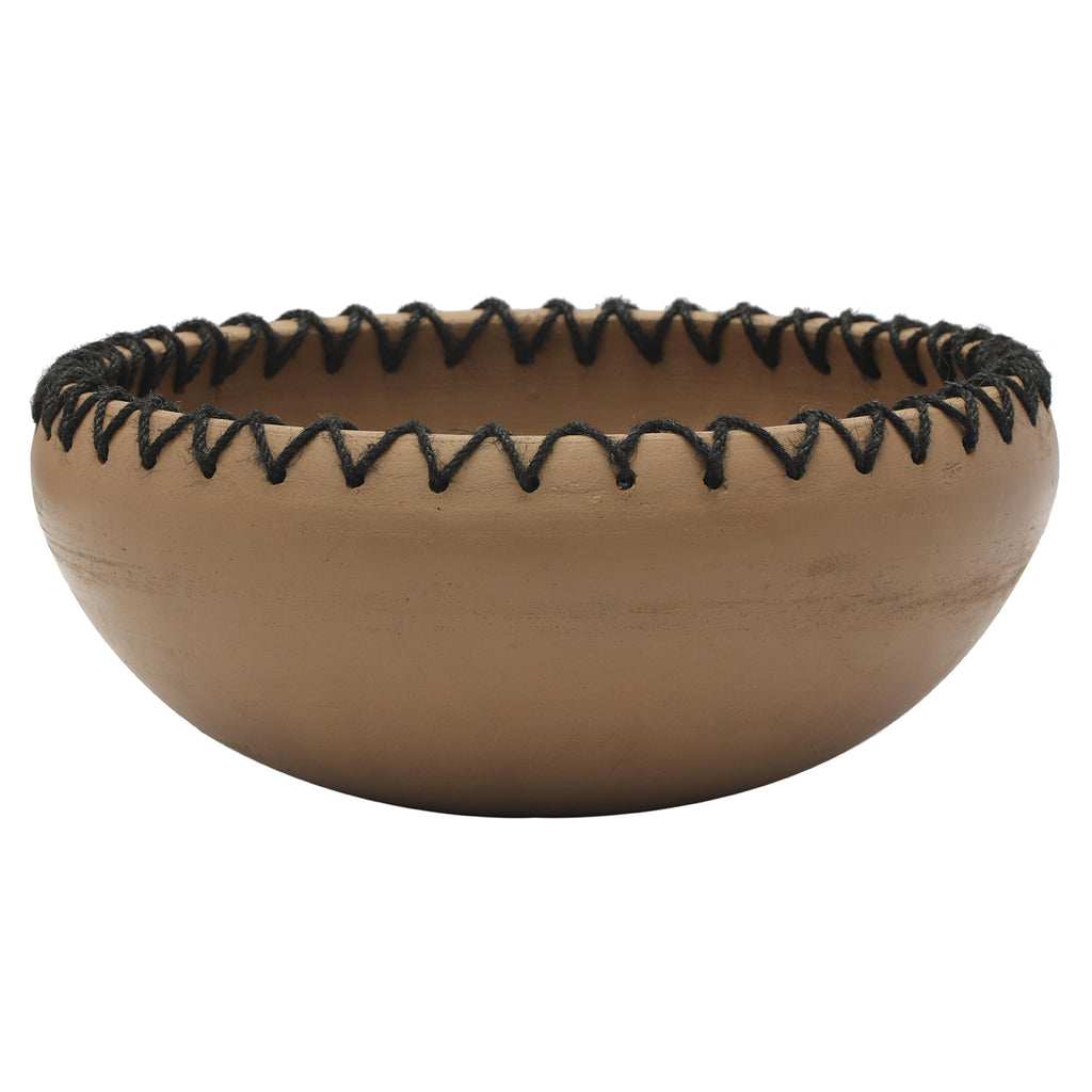 Introducing the TOV Furniture Souk Natural Terracotta Collection, a stunning fusion of craftsmanship and artistry featuring a threaded bowl adorned with black jute, providing a captivating textural detail. The accompanying vase showcases a woven rattan top, adding a touch of organic charm. These pieces seamlessly integrate into a wabi-sabi aesthetic, transcending functional elements to become sculptural works of art, ideal for decorative purposes in any space.