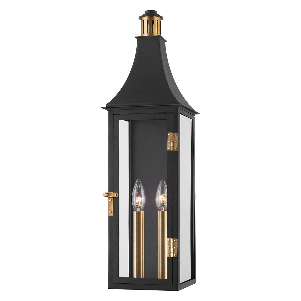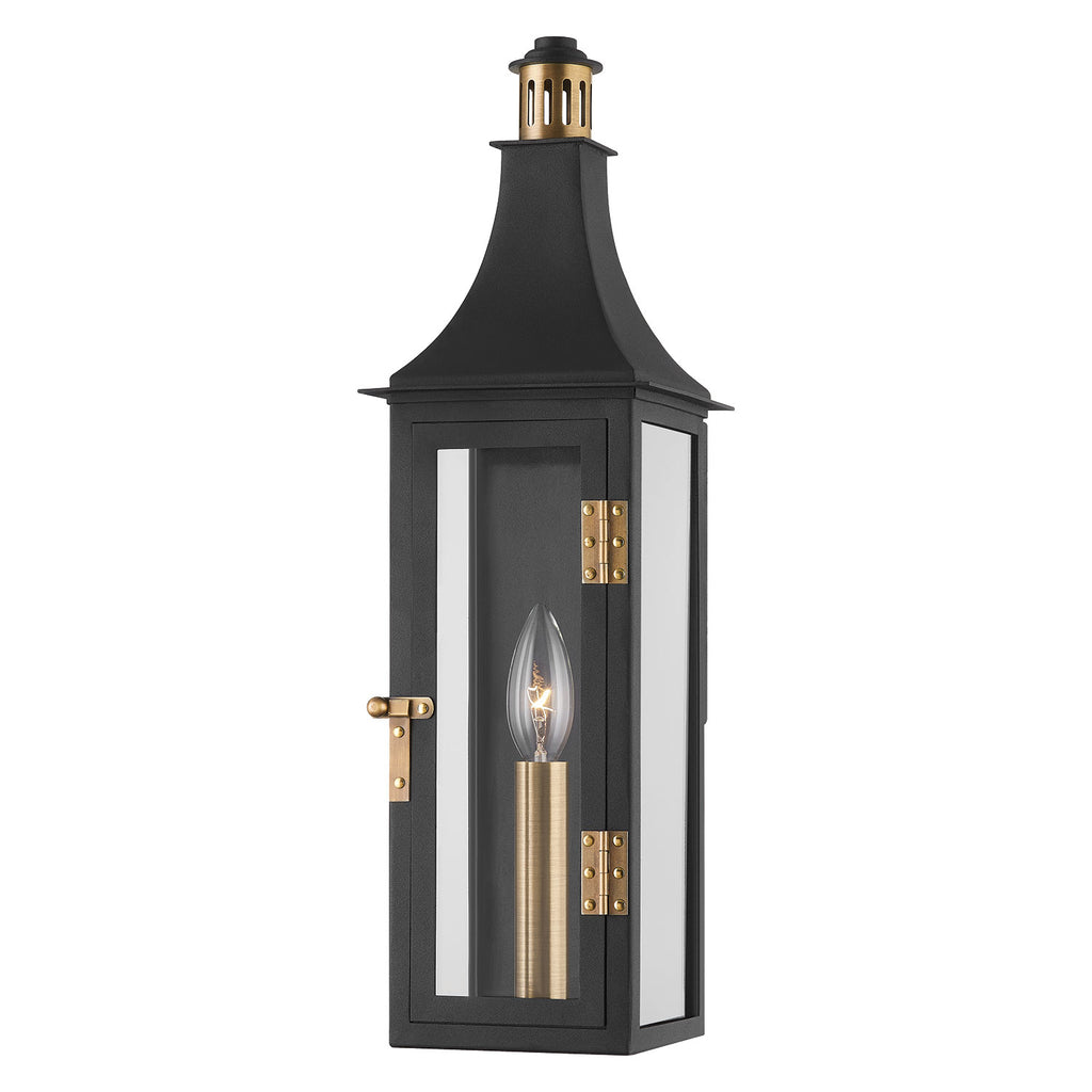 Casual, sophisticated, and little bit curious, express yourself with eclectic, artisan-made lighting by Troy. With its slim profile, elongated silhouette and metal accents, Wes is an updated, elevated take on the traditional lantern sconce. The hinges and knob detailing along with the Texture Black and Patina Brass two-tone finish feel very stylized. Choose from three sizes to add a fresh, tailored look to any exterior.