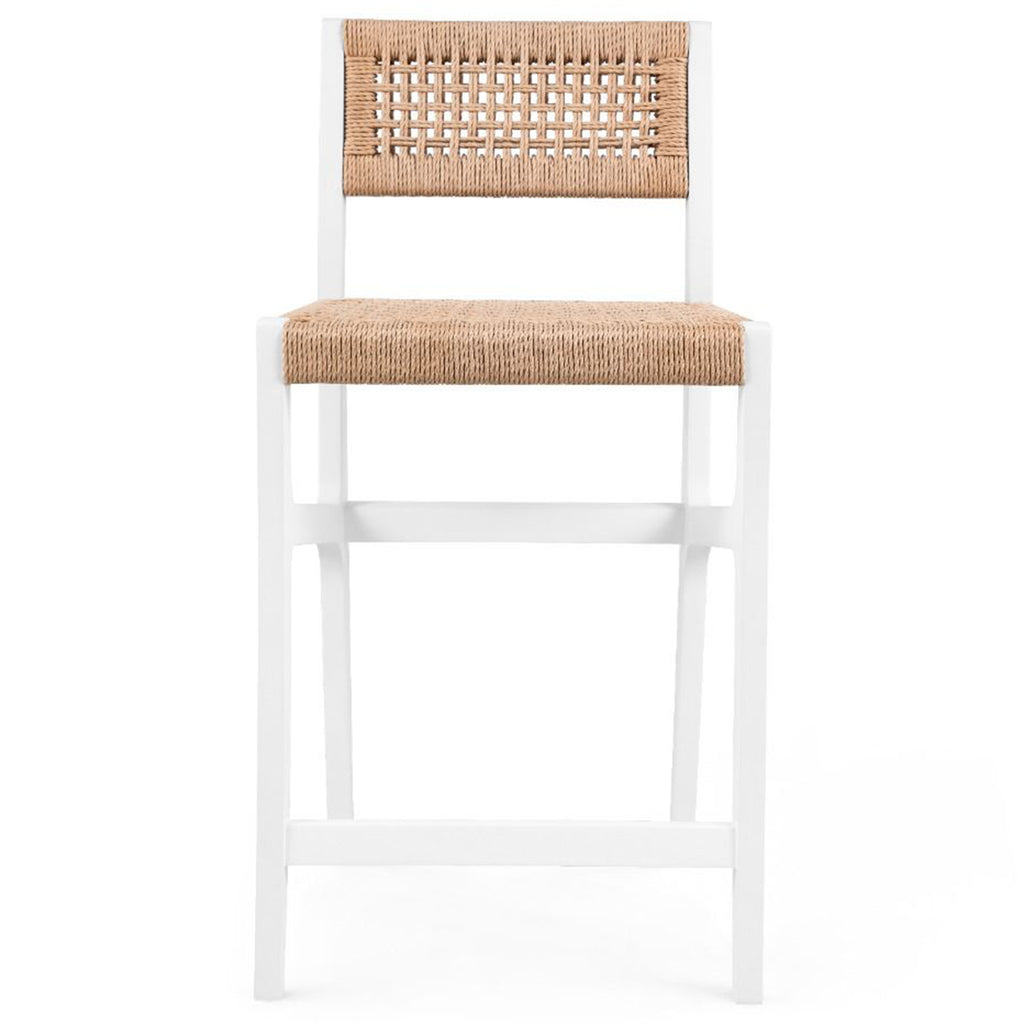 Discover the Villa and House Eva Counter Stool, a perfect fusion of size, elegance, and Scandinavian charm. With two exquisite finishes and a basket-weave rope seat and back, it marries aesthetics and practicality flawlessly. The stool's legs are subtly tapered, and curved spindles exude artisanal craftsmanship, capturing the essence of Danish-inspired simplicity, strength, and natural beauty. Elevate your kitchen, bar, or dining space with this exceptional blend of style and function, embracing the understated luxury it brings to your home.