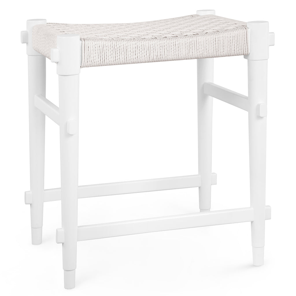 Discover the allure of our Villa and House Rope Counter Stool—a harmonious blend of the classic Arts and Crafts style with modern cool. Meticulously made using age-old techniques from solid mahogany, it achieves a distinctly contemporary aesthetic. The backless design, wide frame, and handwoven rope seat, all enveloped in white lacquer, create a modernized rustic look. Ideal for contemporary coastal or country homes, this stool effortlessly complements diverse decor schemes with a touch of sophistication.