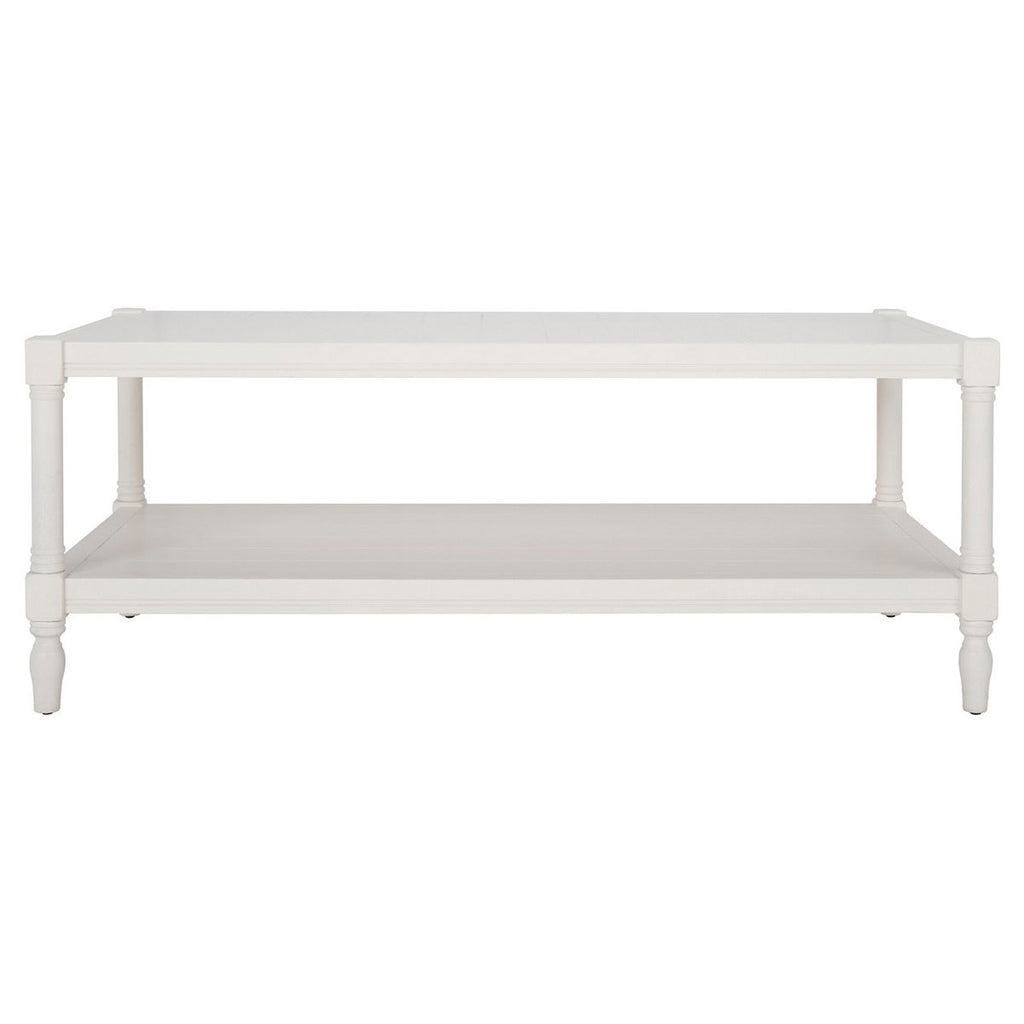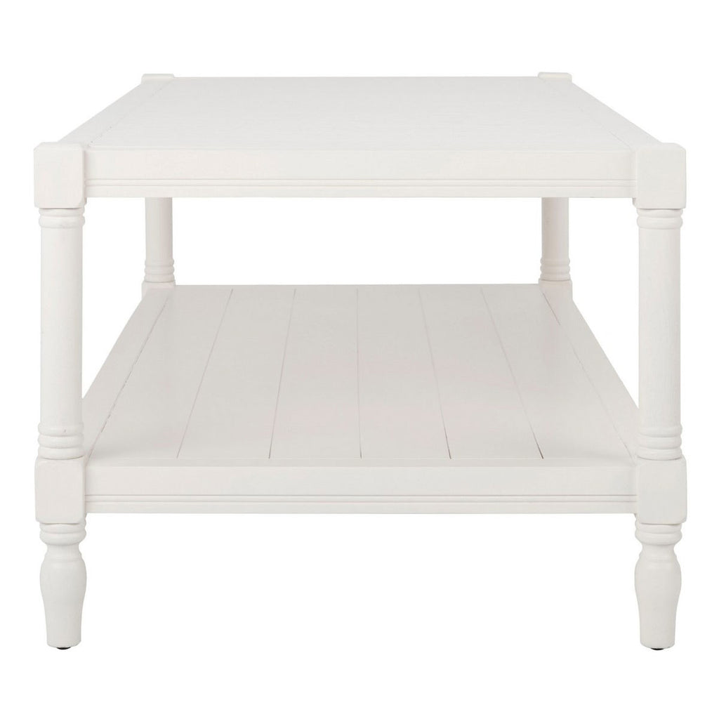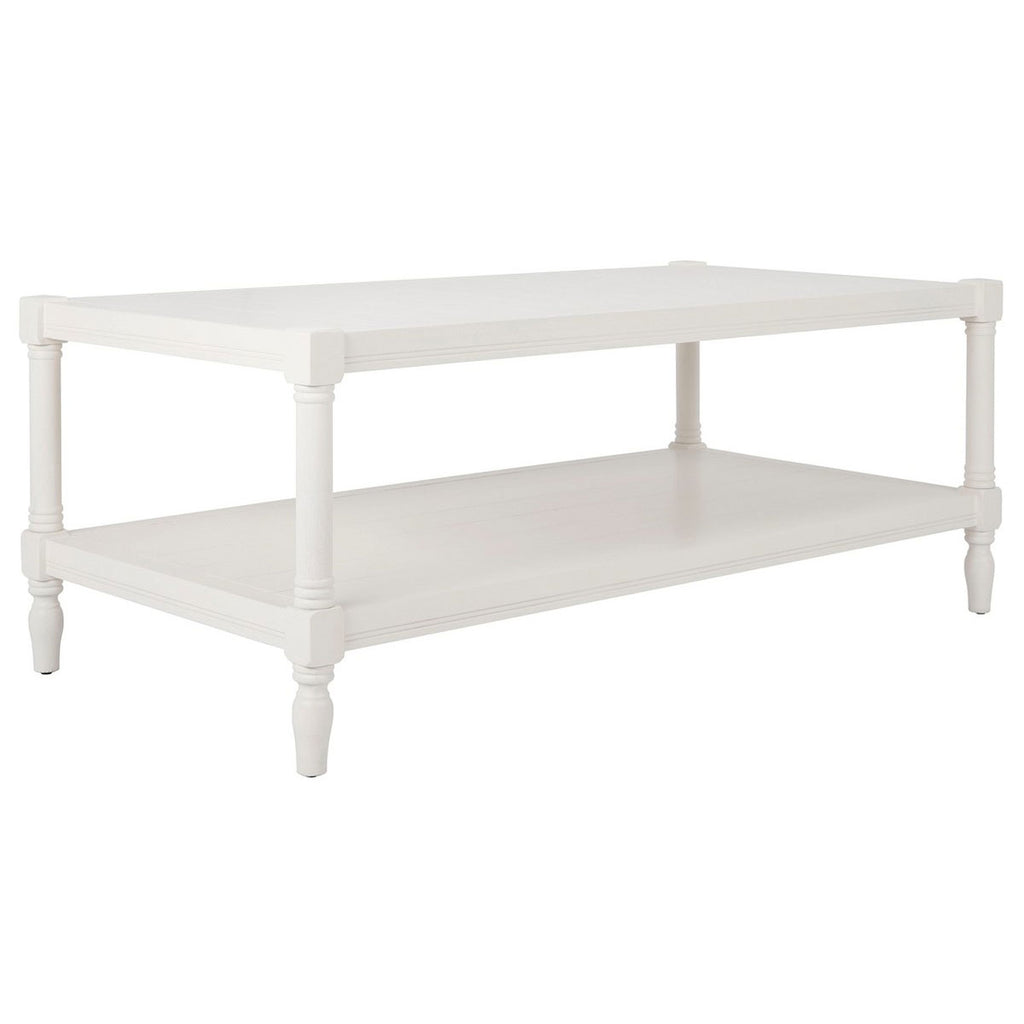 Evoke the charm of coastal cottage style with this coffee table in a pretty painted finish. An inviting combination of form and function, this piece is crafted of pine artfully turned spindle legs, plus a slatted top and lower shelf for storage.