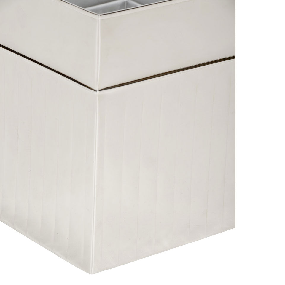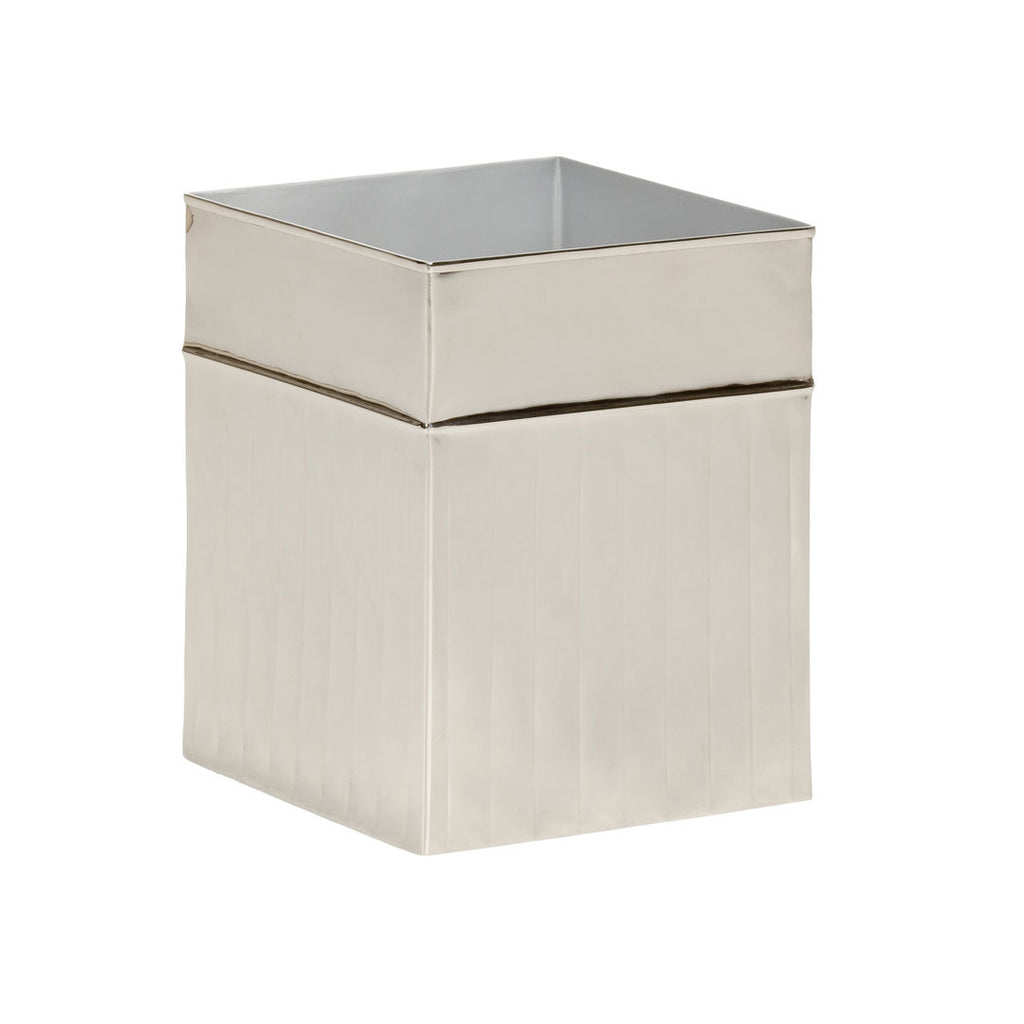 Add the finishing touch to any home or office decor with this attractive wastebasket. Crafted of aluminum with a polished brass or polished nickel finish, it will complement your design style.
