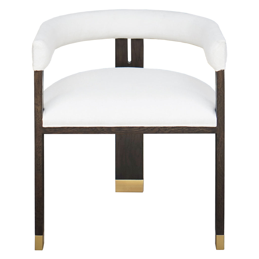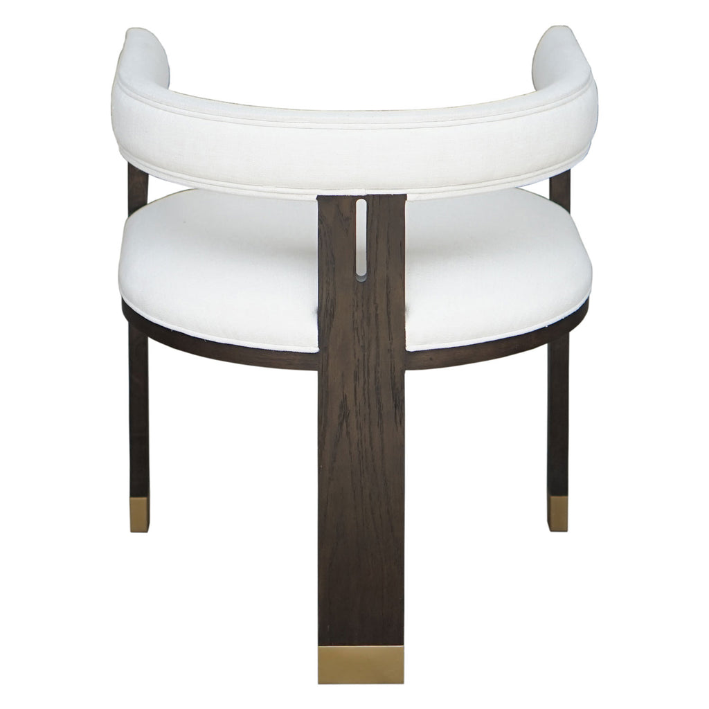 Worlds Away invites guests to sit in style with this handsome side chair. A unique accent to a living room or dining room, this seat combines eclectic textures for a fresh statement. Modern wooden accent chair with white linen upholstery.