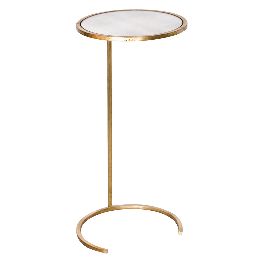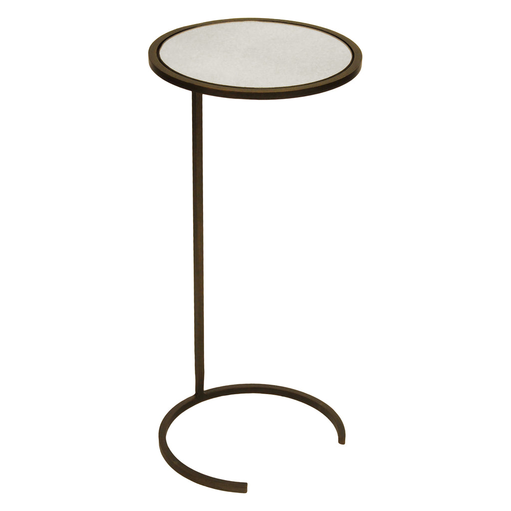 Worlds Away's contemporary glamor comes to life upon this gorgeous side table. Its eclectic textures complement a range of styles, making it the perfect addition to a bedroom or living room. Clean, elegant lines give this furnishing an elevated finish. Small round cigar table in bronze, gold leaf or silver leaf with antique mirror top.