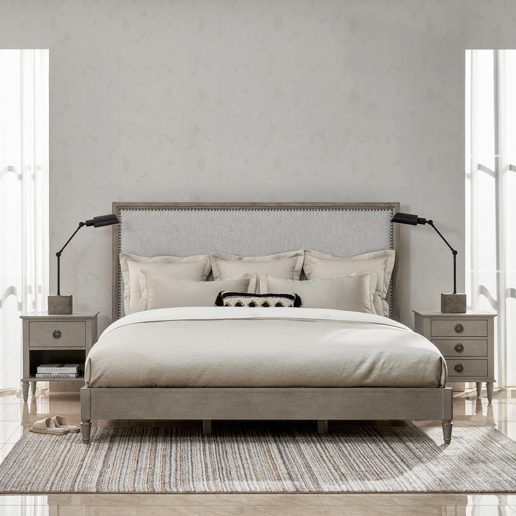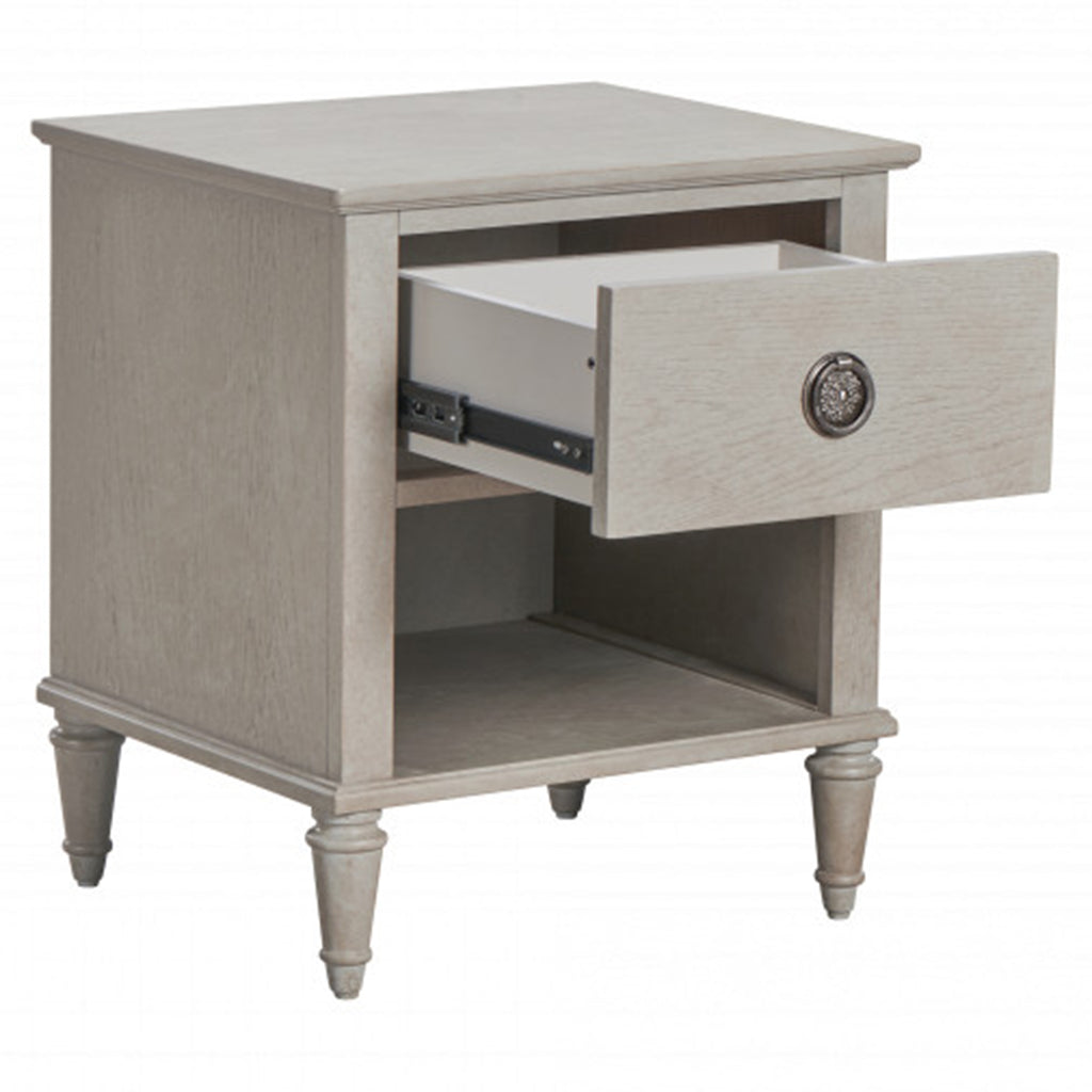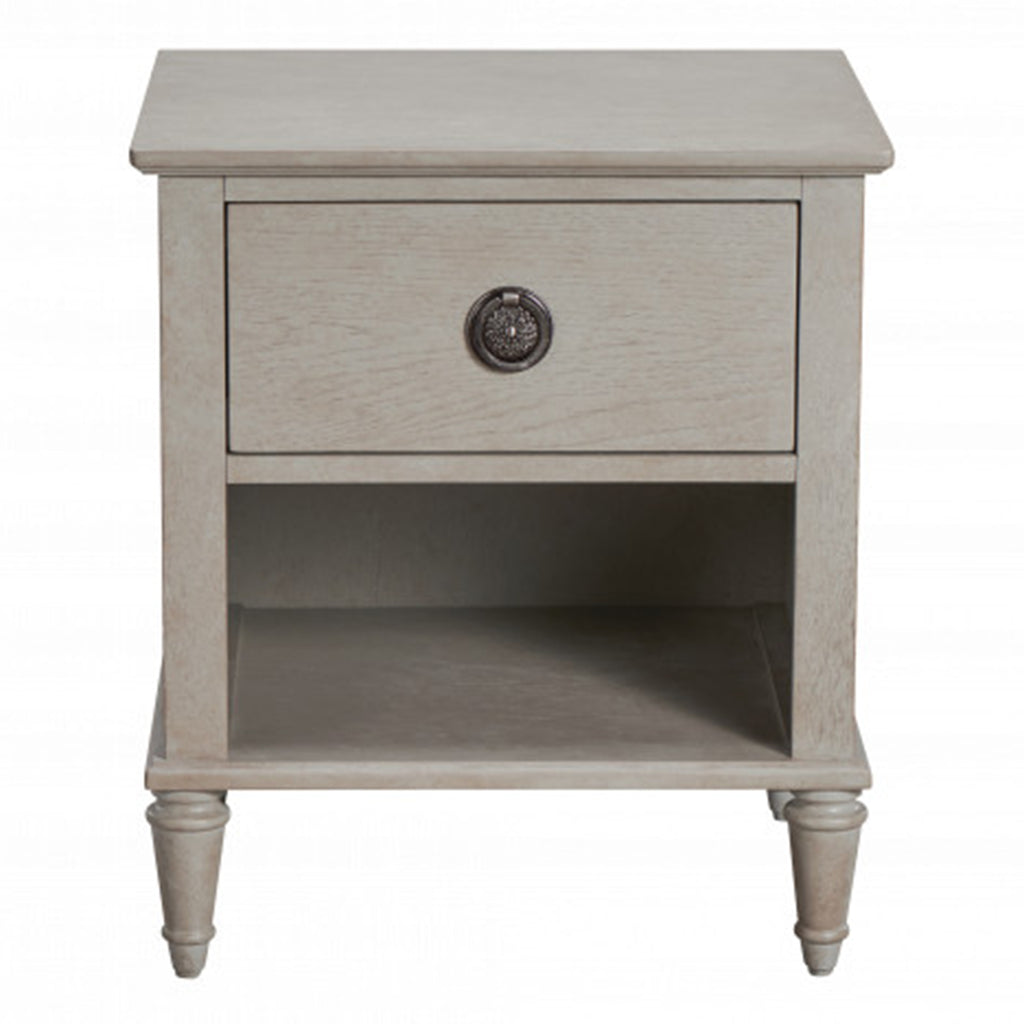 This contemporary modern designed nightstand crafted from solid wood showcases a clean-lined silhouette and the concealed handle drawer for an on-trend look. The original wood grain of the selected solid wood is shown in front of you by open paint finish, which is classic and natural. The nightstand has a gray finish. The unique shape of the footboard foot with its conical and rounded curves and special milling pattern, is like the column of traditional architecture, showing the medieval European style and providing stable support and sufficient clearance from the ground to facilitate cleaning. Besides, the nightstand features 2 drawers that are perfect for providing ample room for all your bedside necessities, keeping the area around your bed organized. The drawer features metal glides for easy access to your nightly essentials. In addition, the solid part of this nightstand adopts the processing form of finger-jointing, which highlights exquisite craftsmanship in detail.