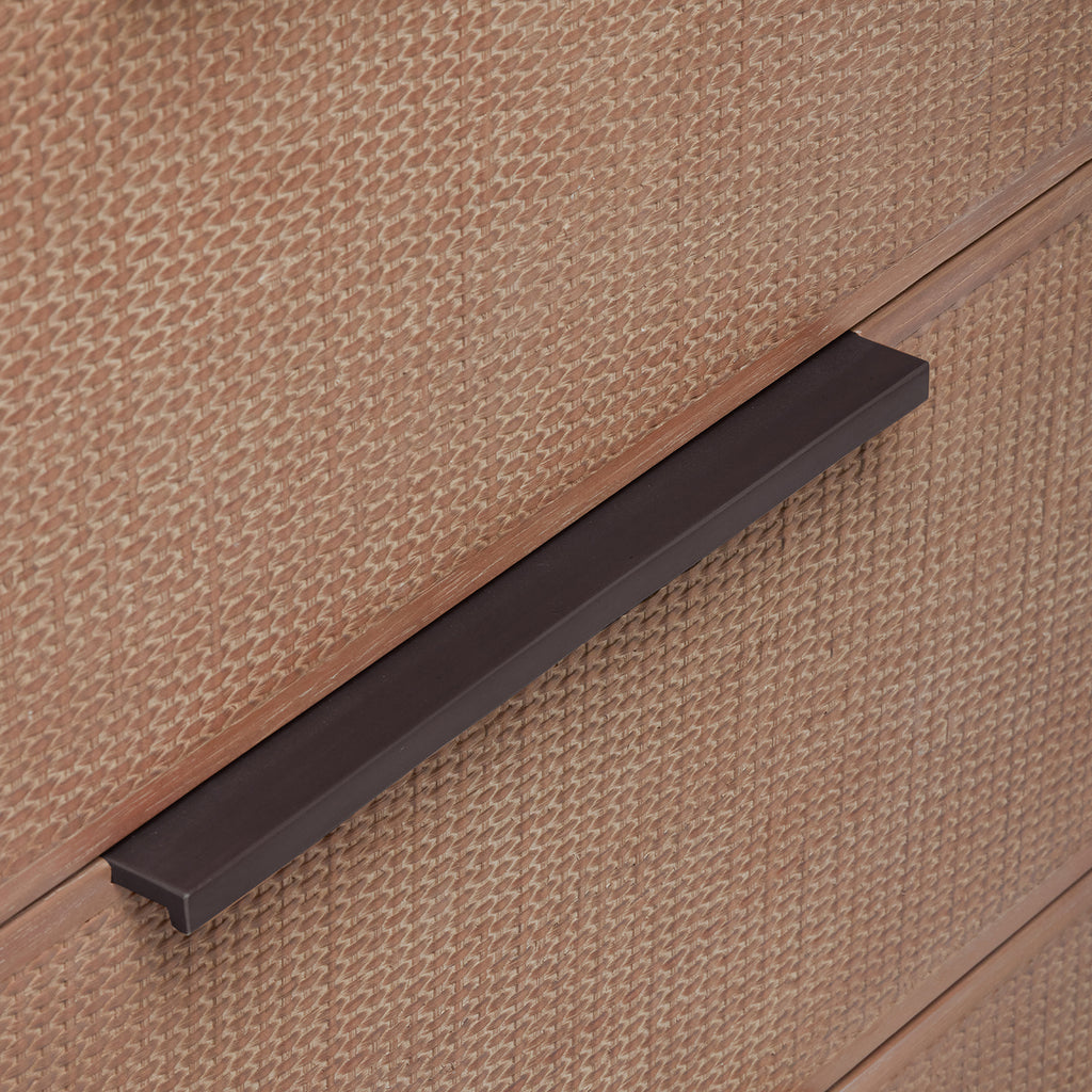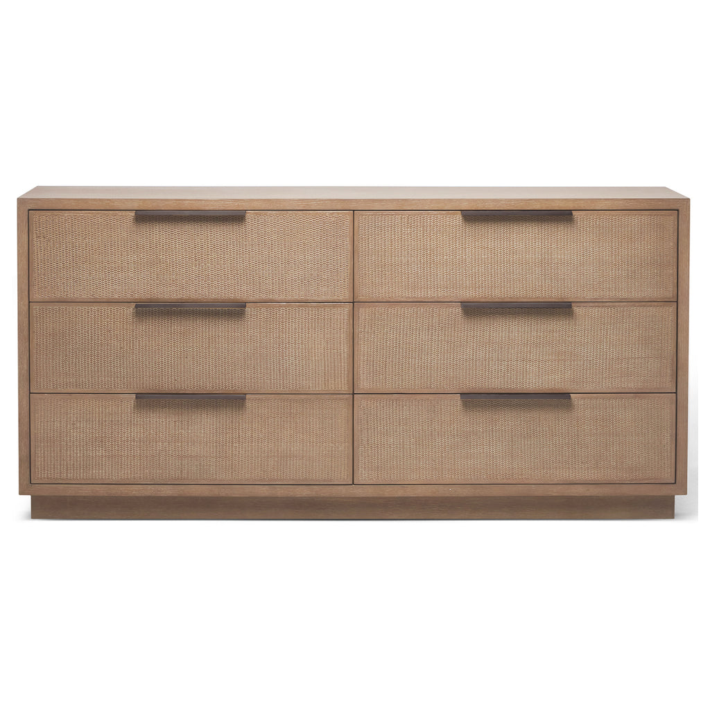 Crafted of oak in a harvest finish and featuring rattan drawer fronts, the Holmes 6 Drawer Chest delivers organic texture and natural flair. This item is made of solid wood. Item will not be exactly as pictured, subtle deviations in hue after finishing can be expected as a result of natural variations in coloration of the base material.