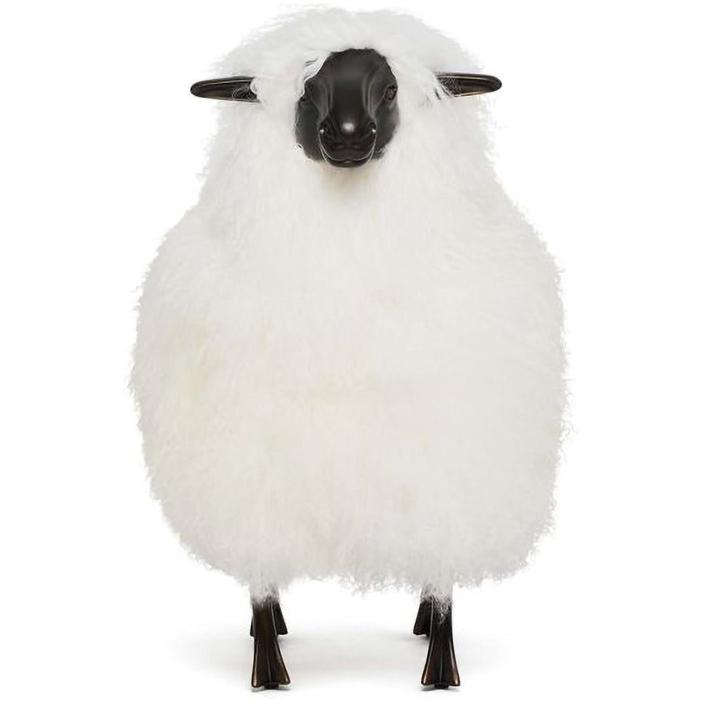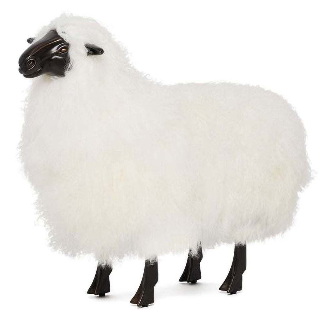 Pairing iron with an antique bronze patina and ivory sheepskin, the Lucie Baby Sheep is a charming, unexpected accent that's sure to spark conversation.